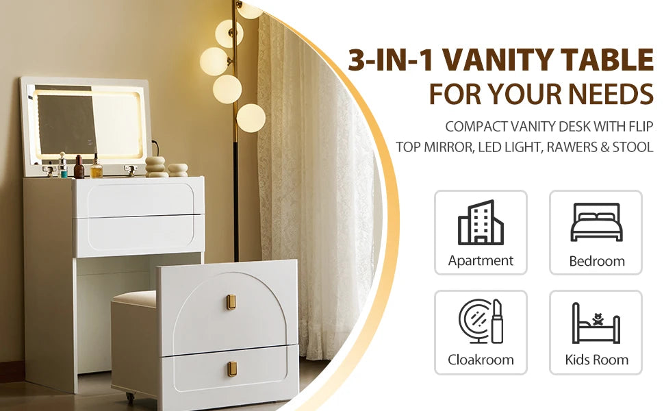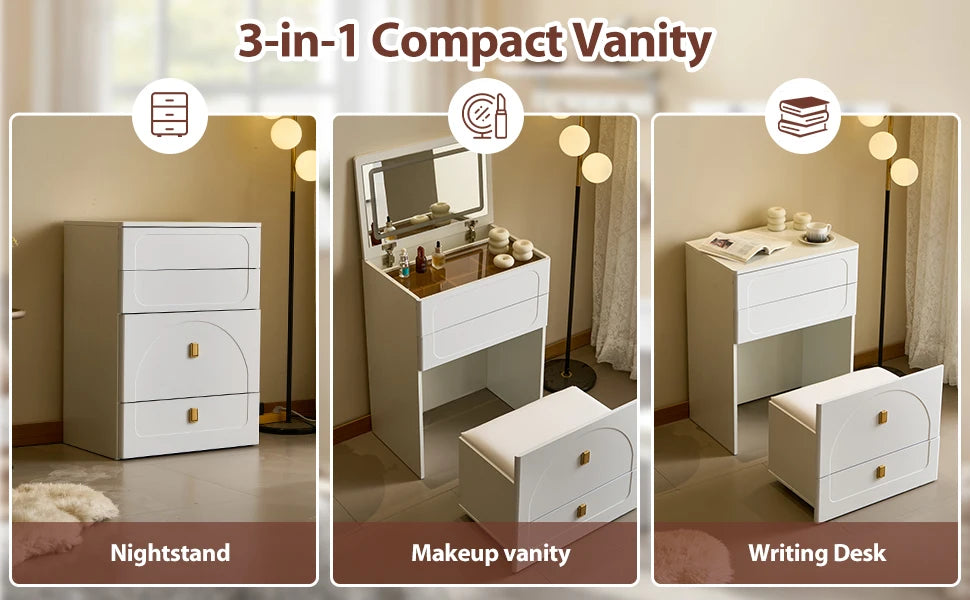 🌟 Multi-Functional Design Transform your space effortlessly! Use it as a vanity desk for makeup, a nightstand for bedtime essentials, or a compact dresser—perfect for apartments, dorms, or tiny bedrooms.