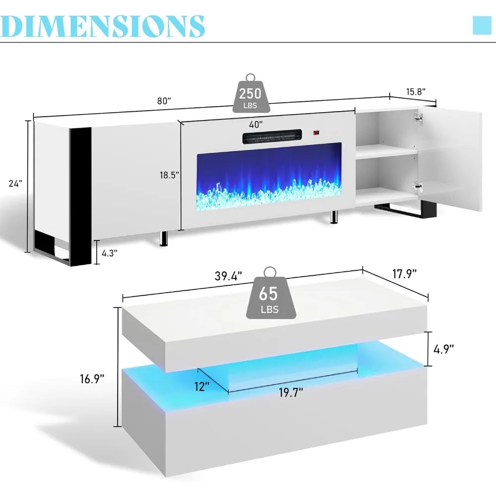 3-Piece Modern Living Room Table Sets, 80" Modern LED TV Stand with 40" Electric Fireplace, High Gloss Coffee Tables for Living