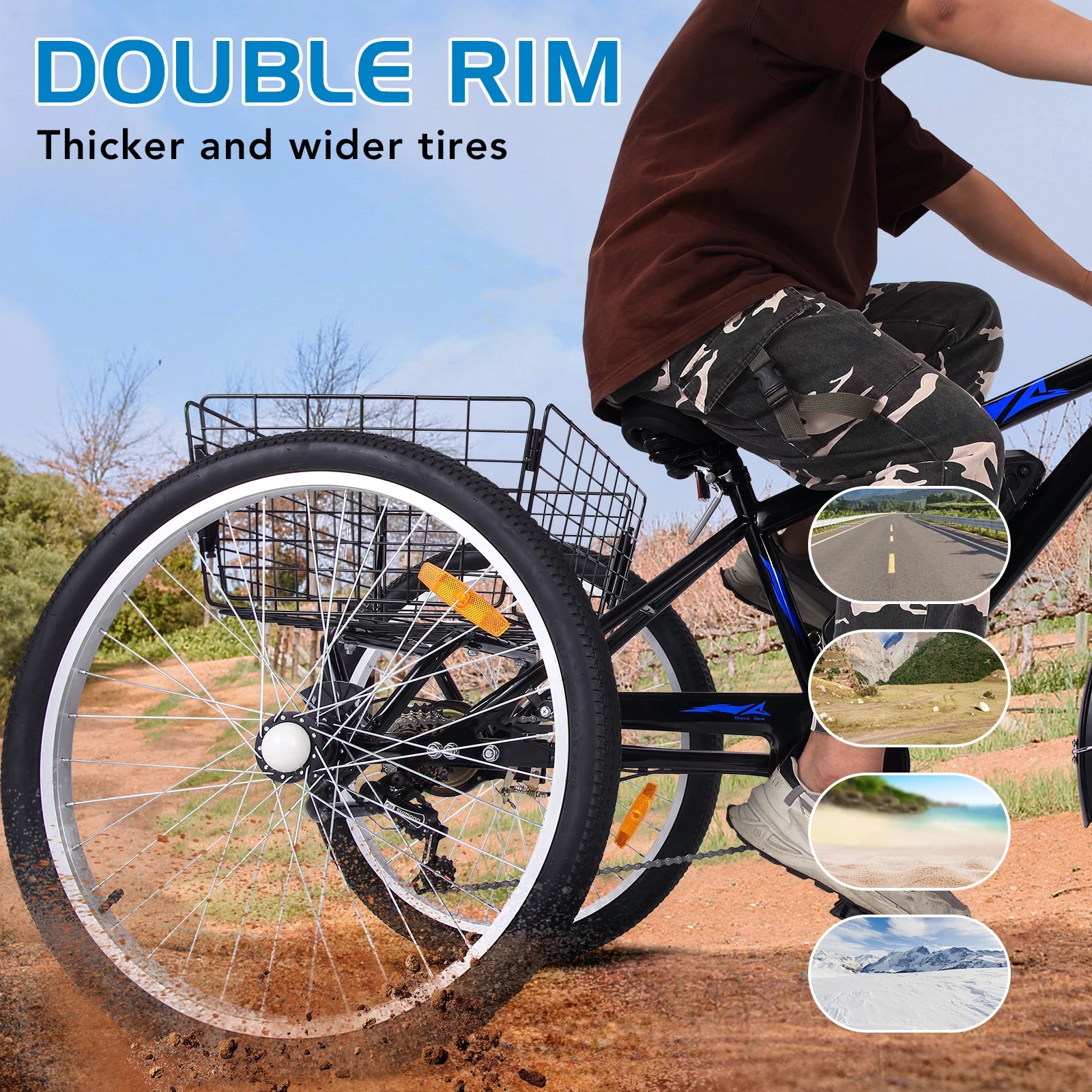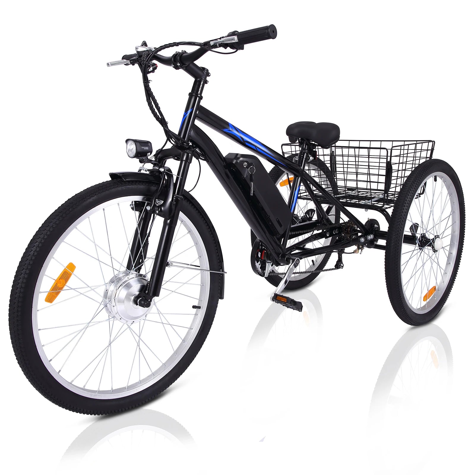 3 Wheel Electric Bicycle for Men Women, 350W Motor Electric Tricycle for Adults, 24" Fat Tire Motorized Bicycle w/ 36V 10Ah Remo