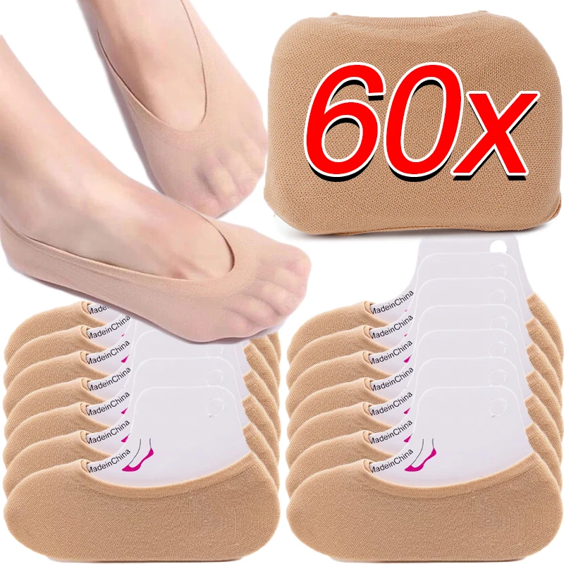 30pairs Summer Short Socks Women Invisible Thin Boat Socks Female Non-slip Seamless Ice Silk Ankle Sox High Heels Slippers Sock