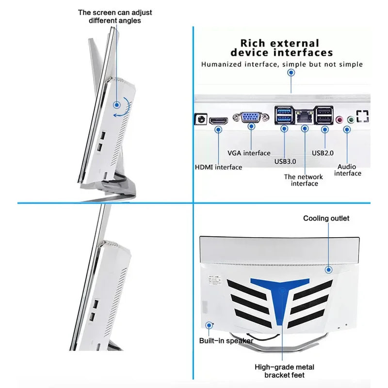 32" Core I7 Pc Gamer I9 Monoblock Curved Monitor Computadora 8GB 16GB 32GB RAM 1TB SSD AIO Computer All In One Pc Gaming