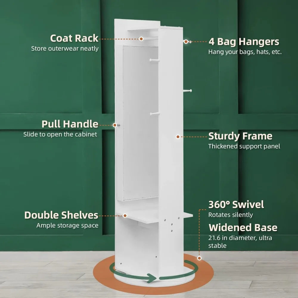 360° Swivel Jewelry Armoire with Full Length Mirror, Slide Jewelry Cabinet Rotating Freestanding Jewelry Organizer with Coat Ra