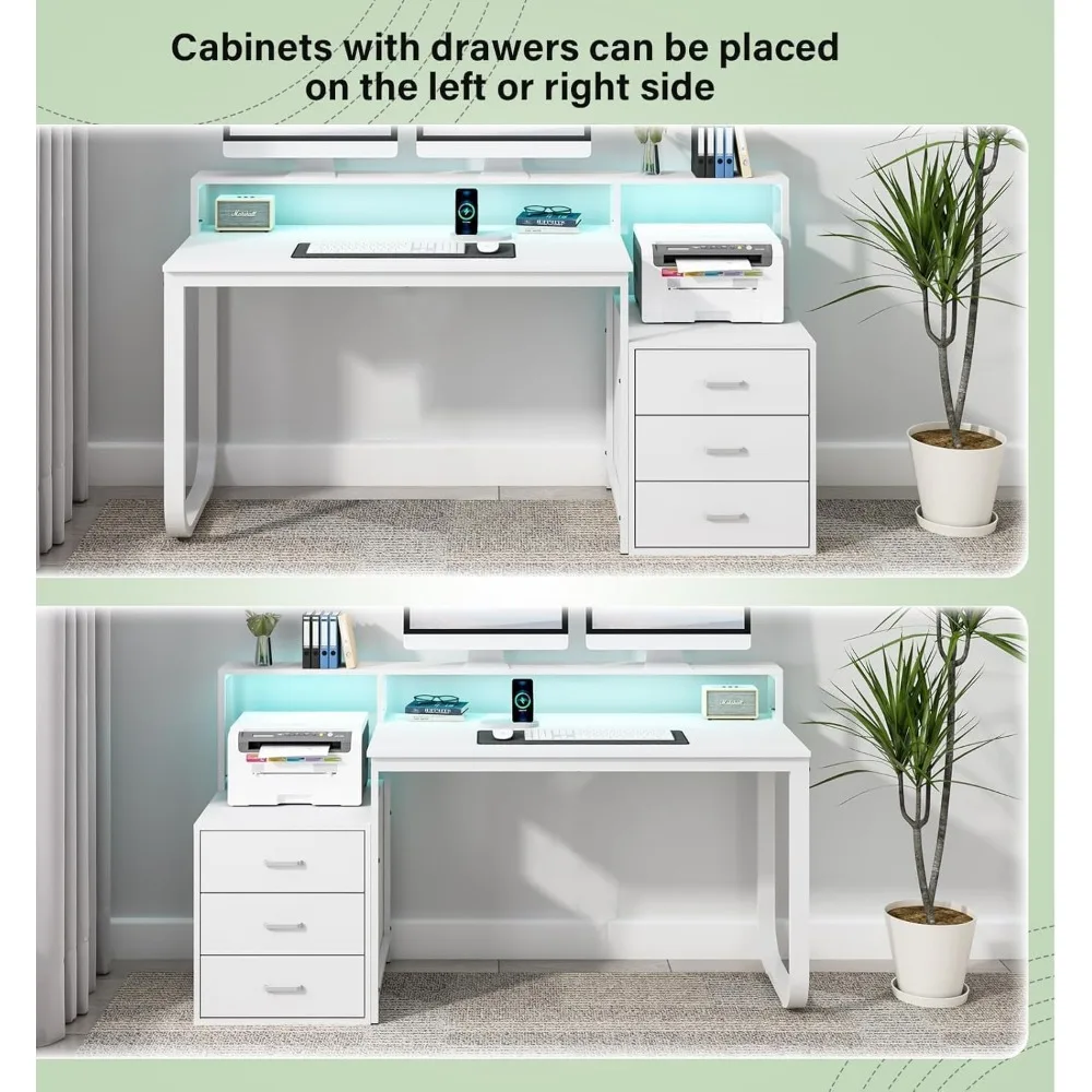 - Multifunctional Computer Desk: Create an office desk that will meet all your needs, this home office desk comes with a large computer desktop, monitor stand, 3 storage drawers, printer spcae and led lights; The ideal computer desk in the bedroom creates the perfect home office environment