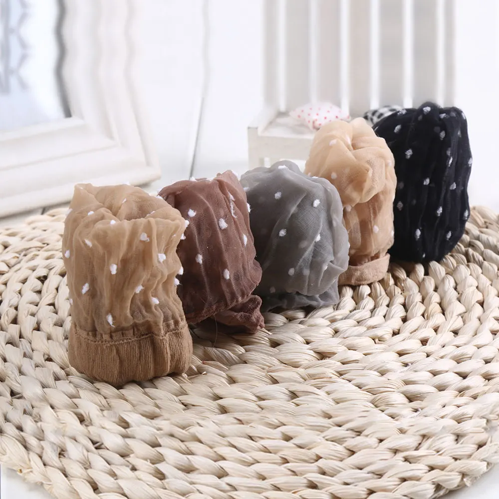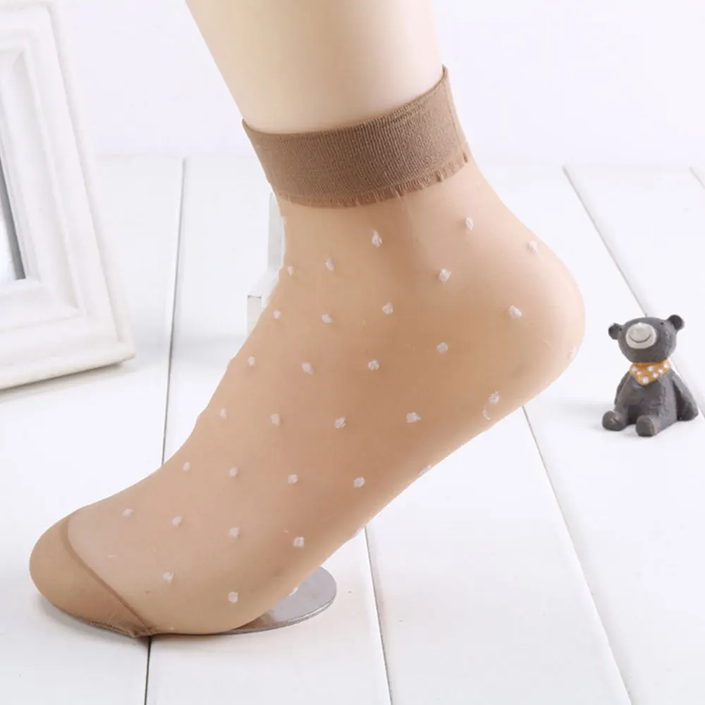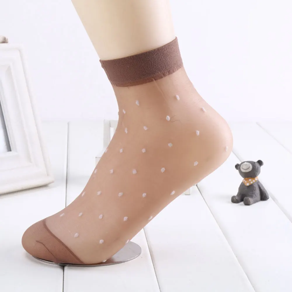 Black Dot Transparent Socks Ultra-thin Elastic Women Crystal Silk Socks Nylon Fashion Ladies Summer Short Ankle Socks