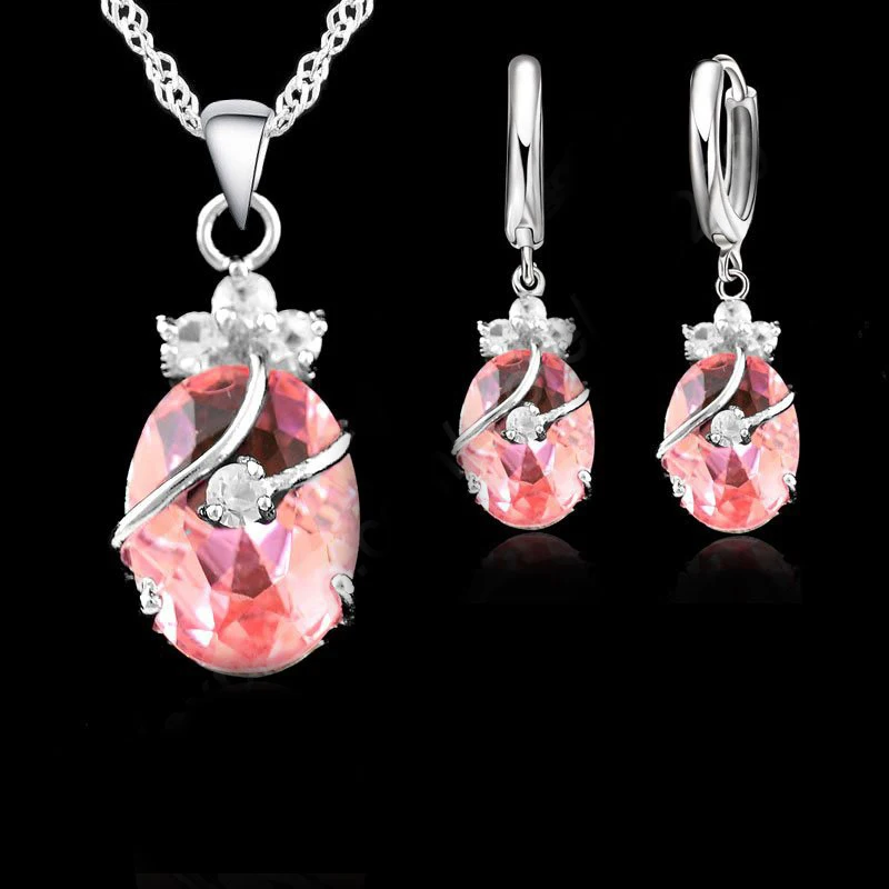 Charming 925 Sterling Silver Austrian Crystal Water Drop Pendant Necklace Earrings Sets For Women Wedding Jewelry Sets