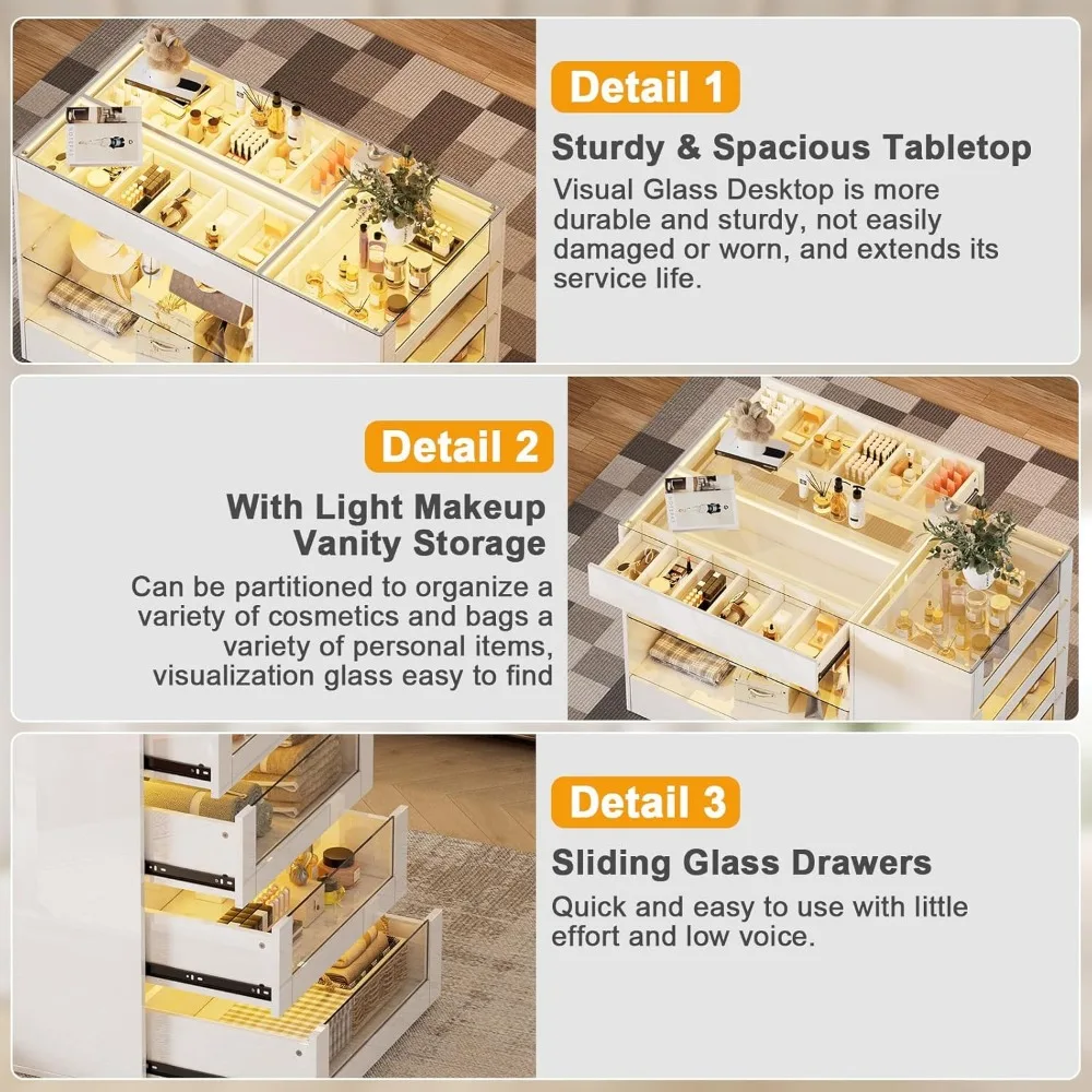 - 【Ample Storage Space】Bedroom island features 8 drawers, 2 open glass shelf and 2 spacious glass top, providing multiple solutions for storage and display. Different sizes of drawers ensure plenty of room for organized storage, making it perfect for your wardrobe needs.