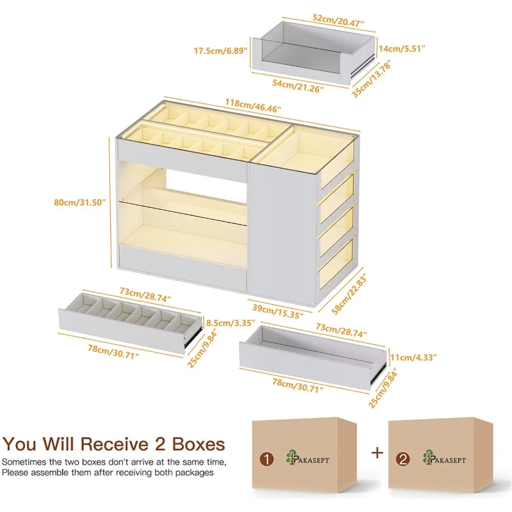 - 【Multi-Functional Wardrobe Cabinet】Overall: 46.46"W x 22.83"D x 31.5"H, The white dresser can serve as armoires island, display island and so on. Whether you have a walk-in closet, dressing room, shops,or bedroom with limited space, this island is designed to fit seamlessly into your environment. This dresser is also a great gift for Valentine's Day, Mother's Day or Christmas.