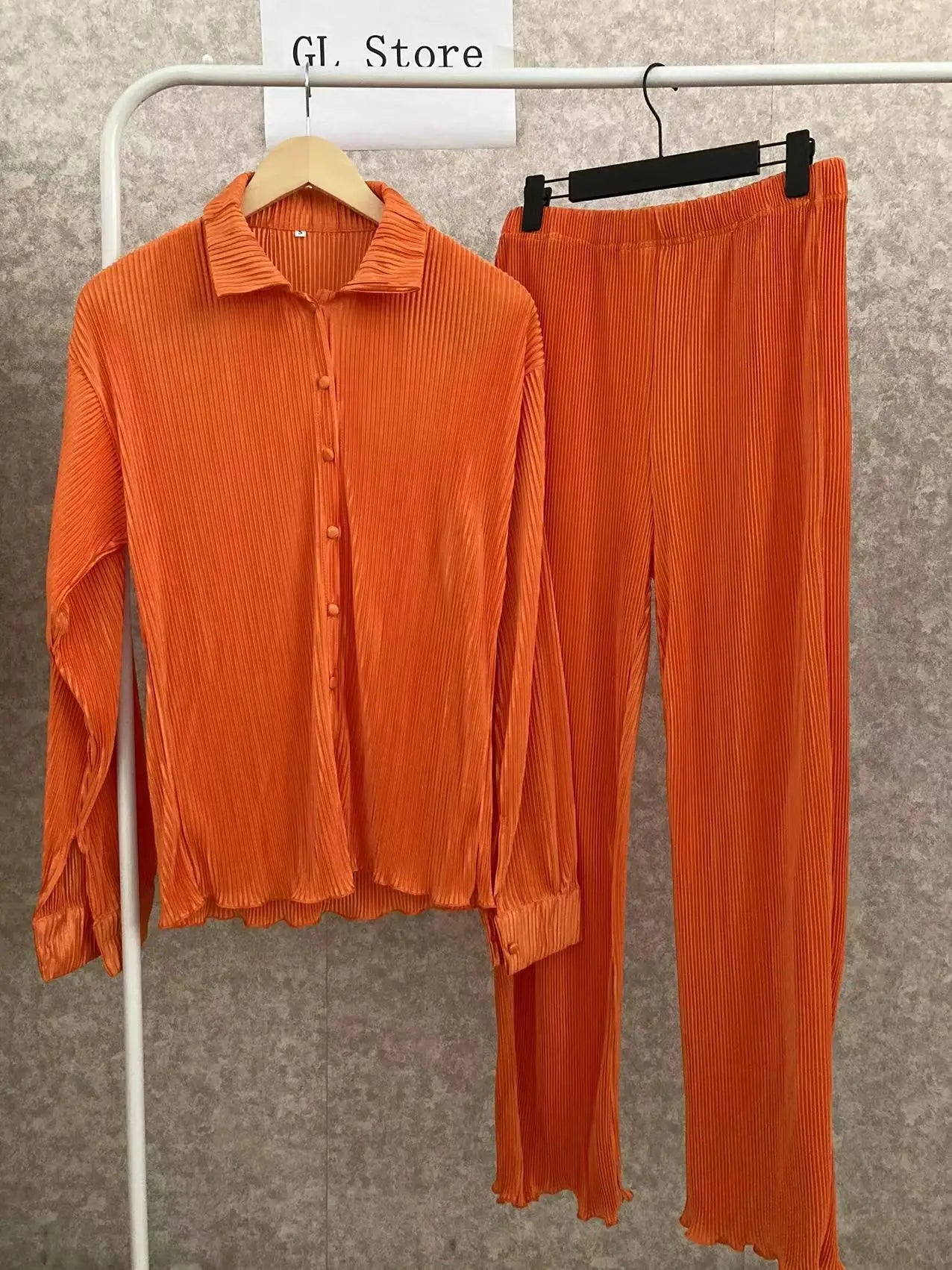 CM.YAYA Street Women's Set Long Sleeve Shirt Tops and Wide Leg Pants Elegant Tracksuit Two Piece Set Sweatsuit Fitness Outfits