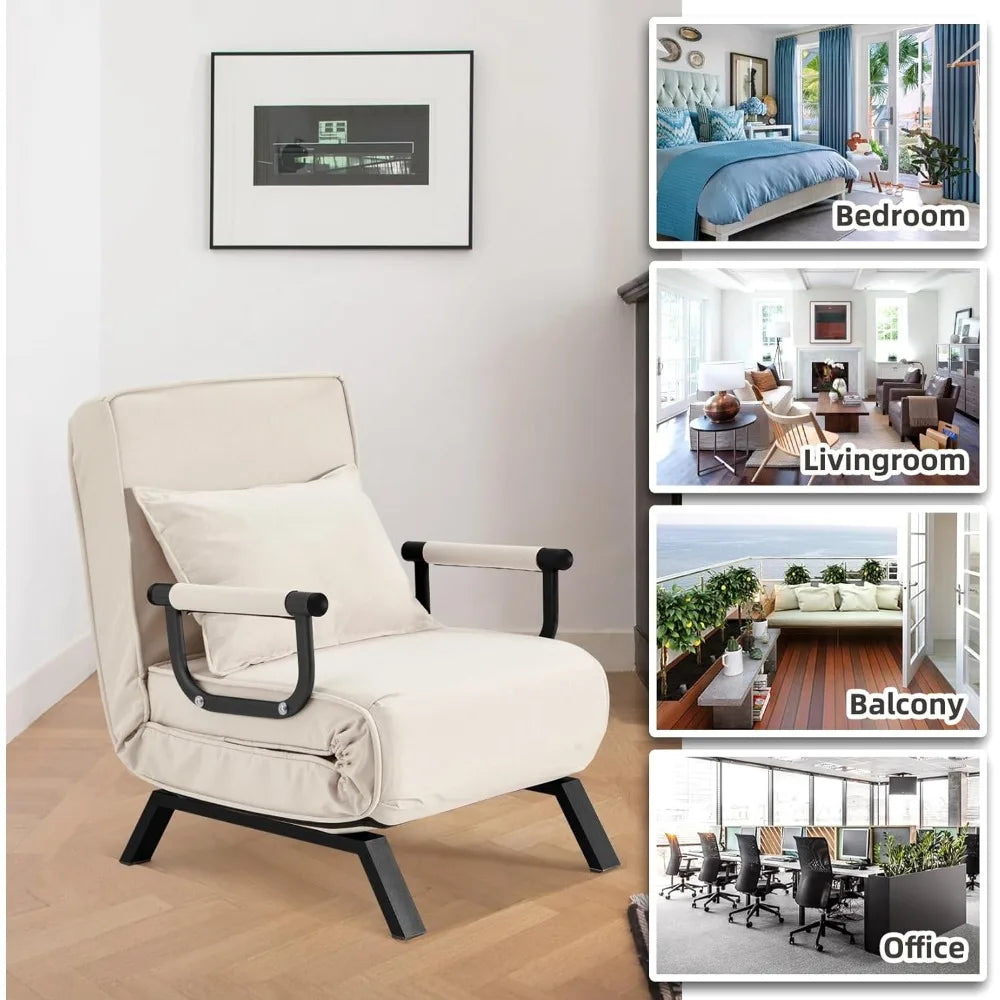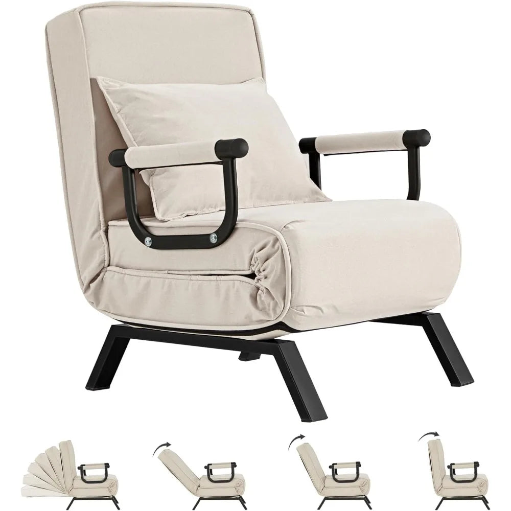 Convertible Bed Sleeper Chair,Tri-fold Upholstered Armchair Sleeper with Pillow,Folding Leisure Chaise Lounge Couch with 6 Angle