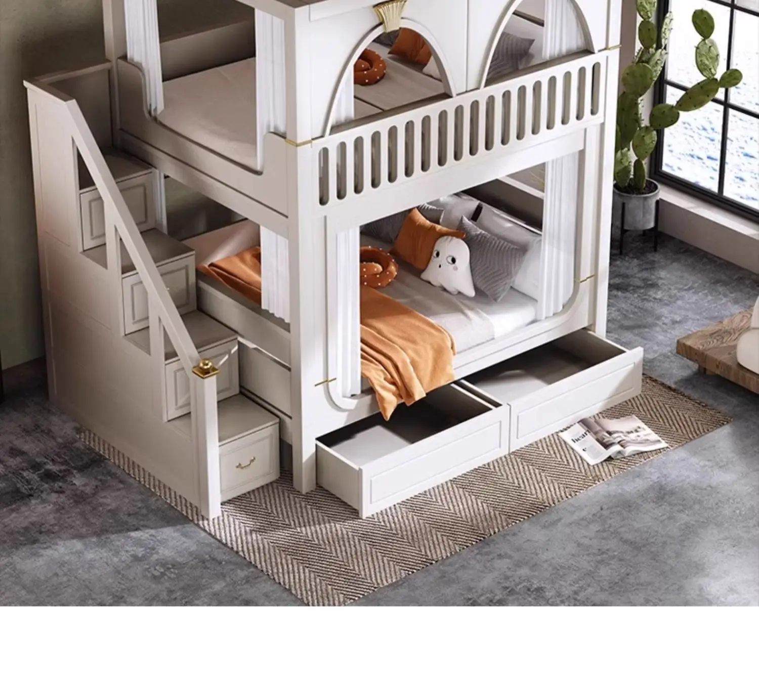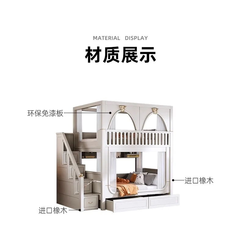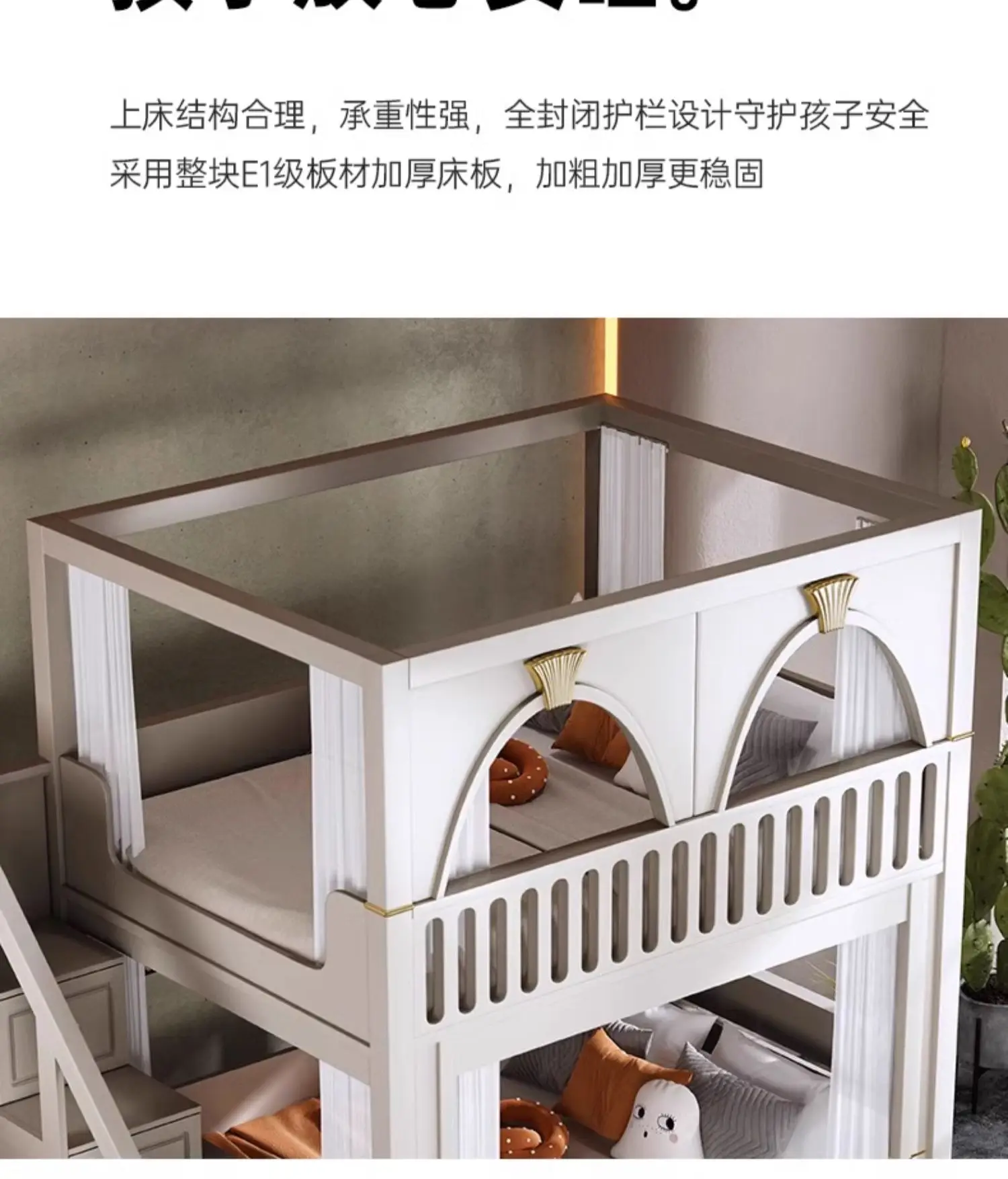 Custom high guardrail children's bed Solid wood two level Deluxe Mom Castle Tree House bed High and low Bunk bed