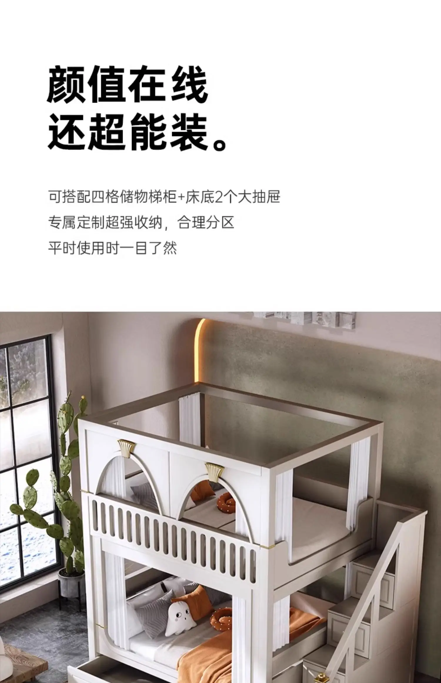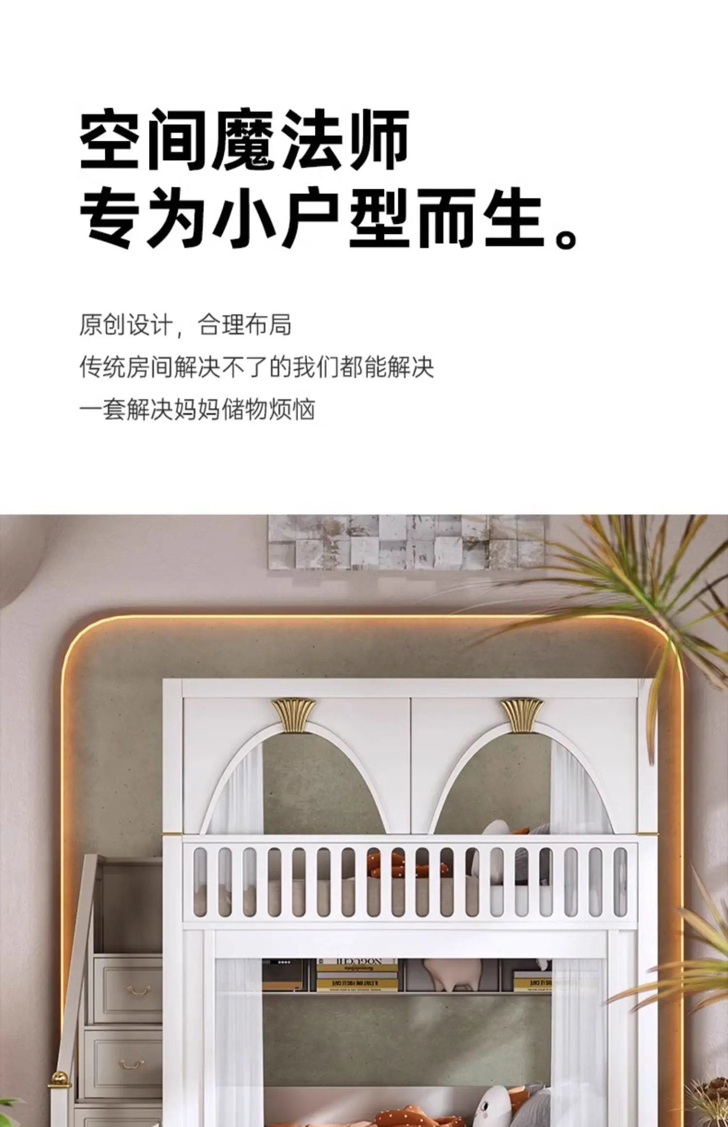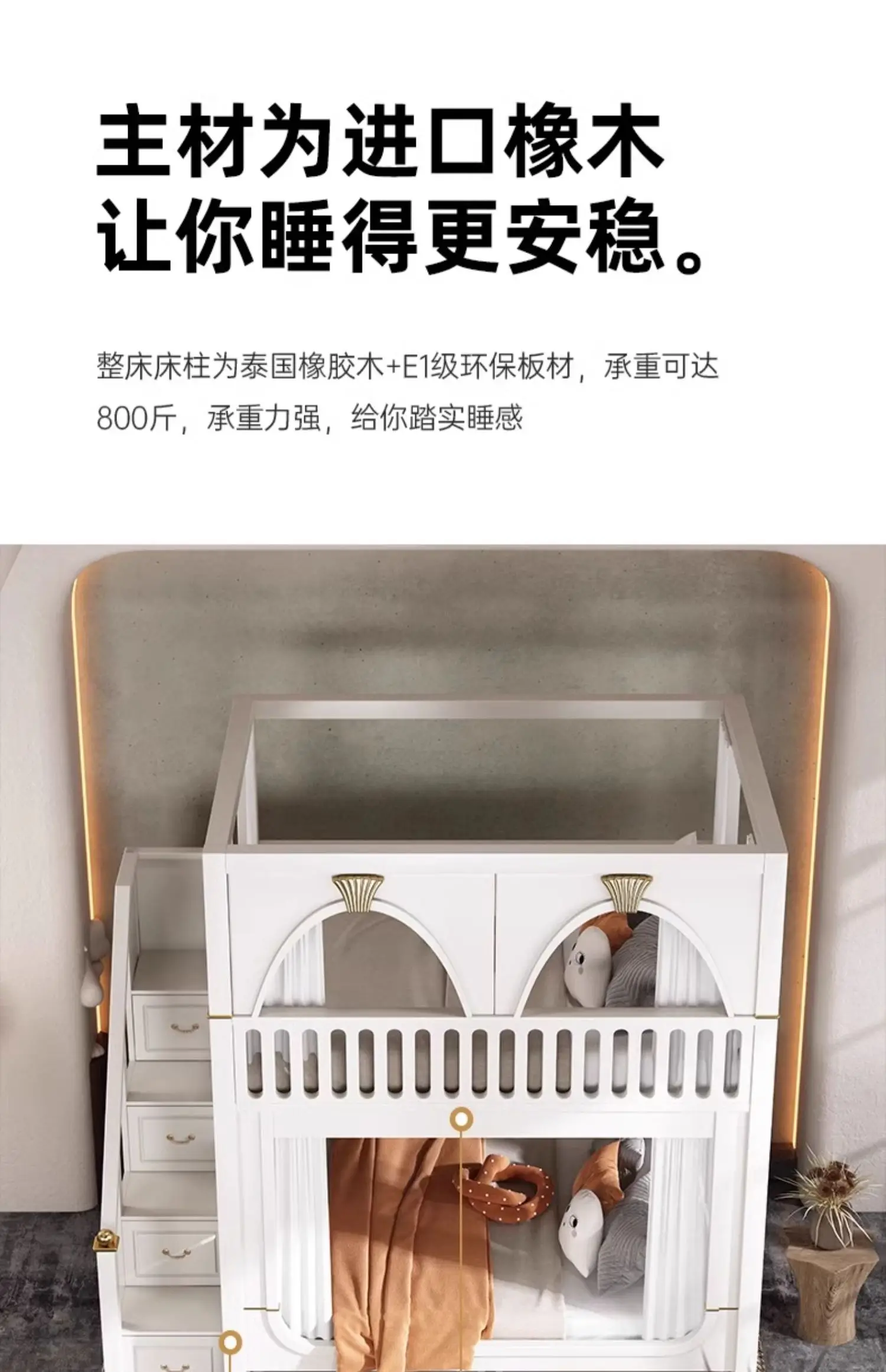 Custom high guardrail children's bed Solid wood two level Deluxe Mom Castle Tree House bed High and low Bunk bed