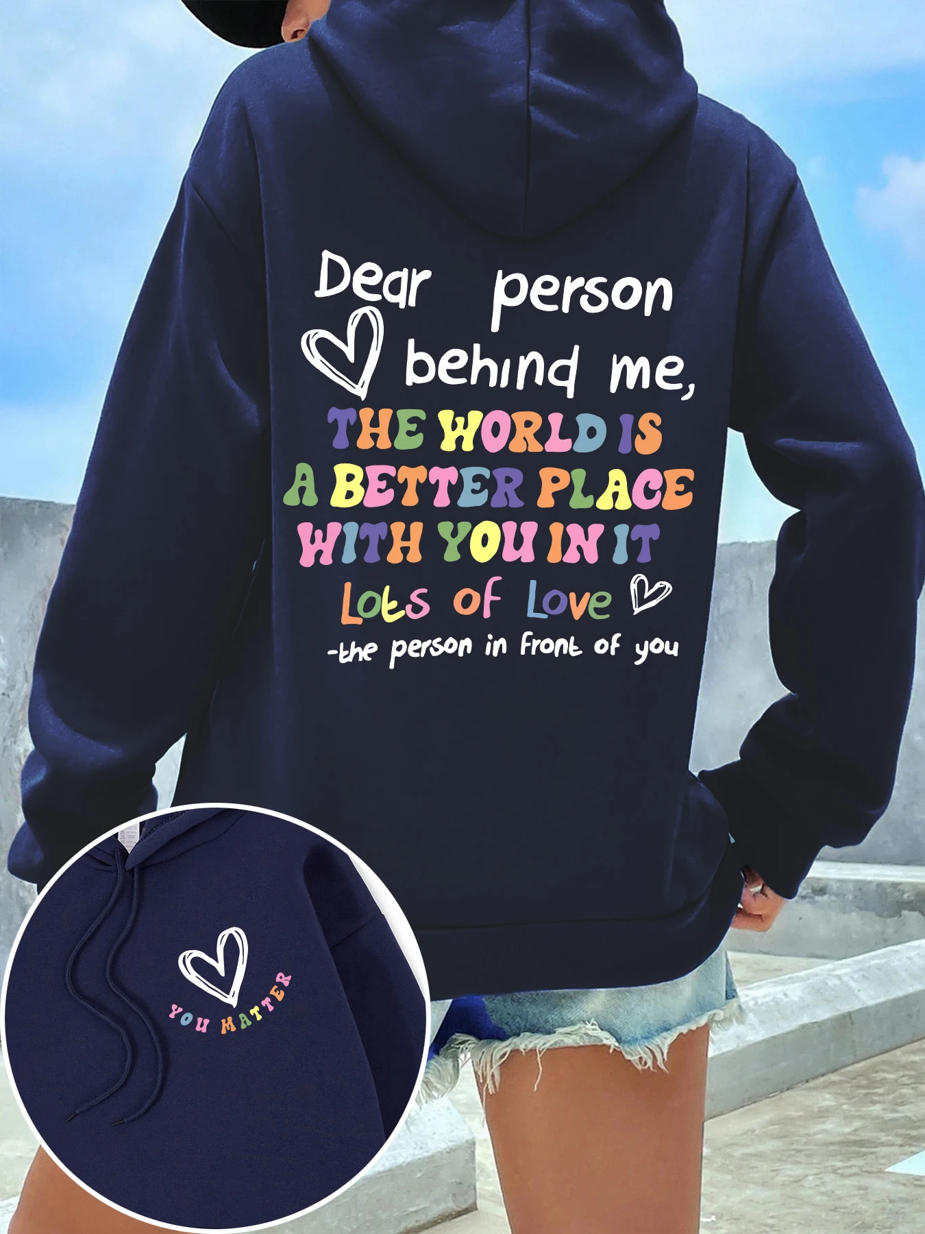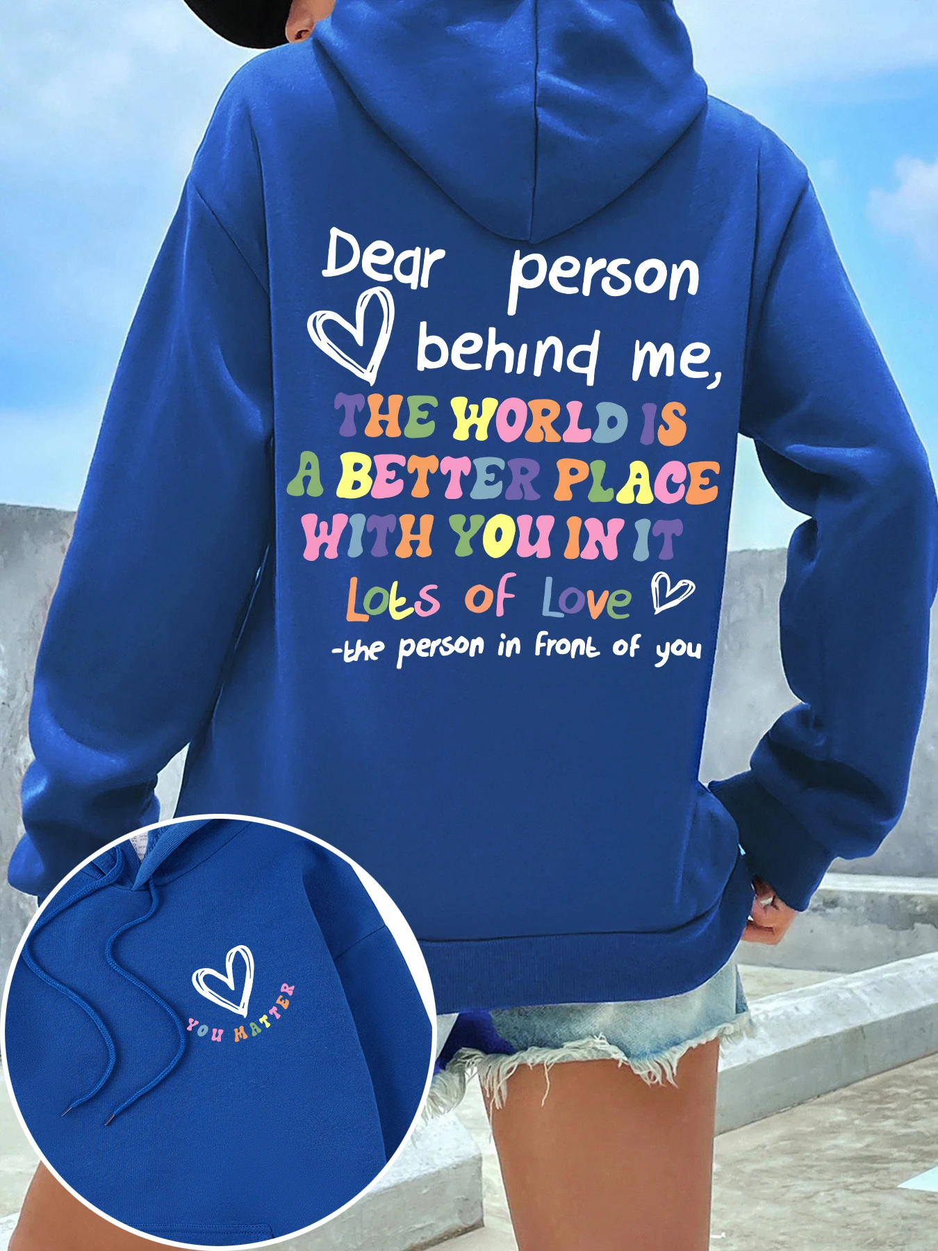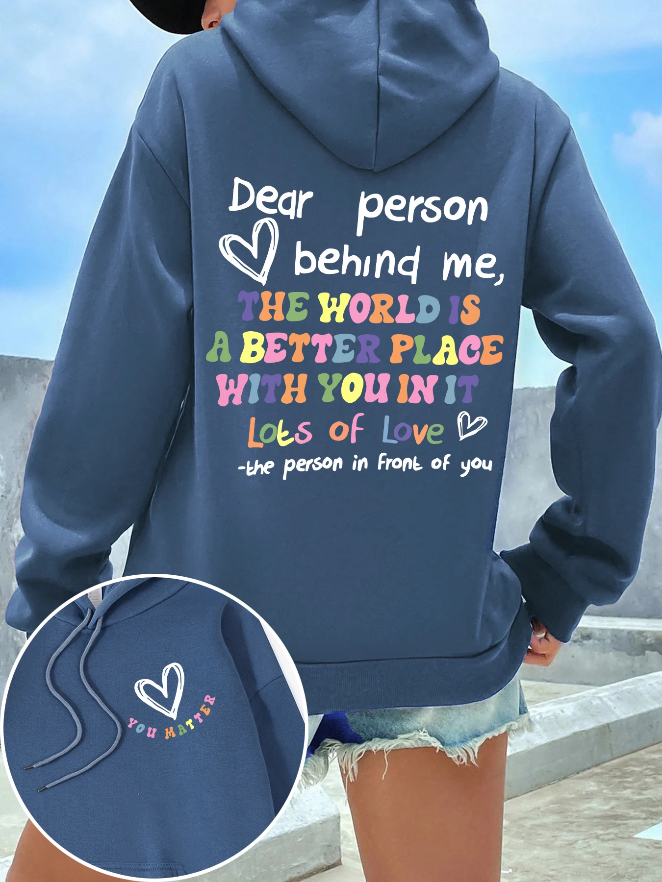 Dear Person Behind Me Hoodie Women Colored Letters Warm Fleece Woman Hoody Fur-liner Spring Autumn Hoodies Y2K Casual Tops