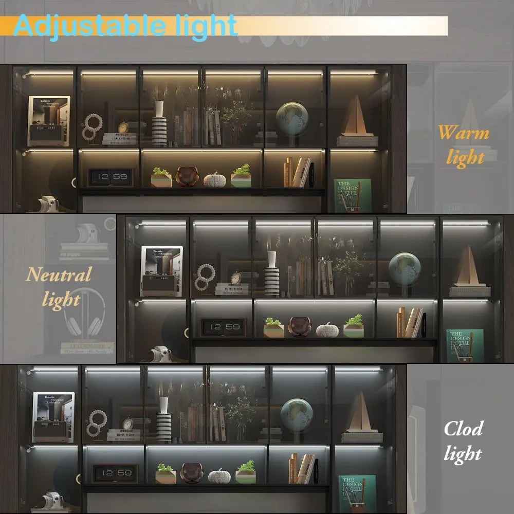 - [Various Storage Options] – This workstation comes with 7 display shelves, 5 open shelves, 2 hidden shelves and 4 drawers. The doors and drawers are perfect for accommodating your items in different sizes and covering all the clutter. The display shelves with lights could store and display your decorations and collections.