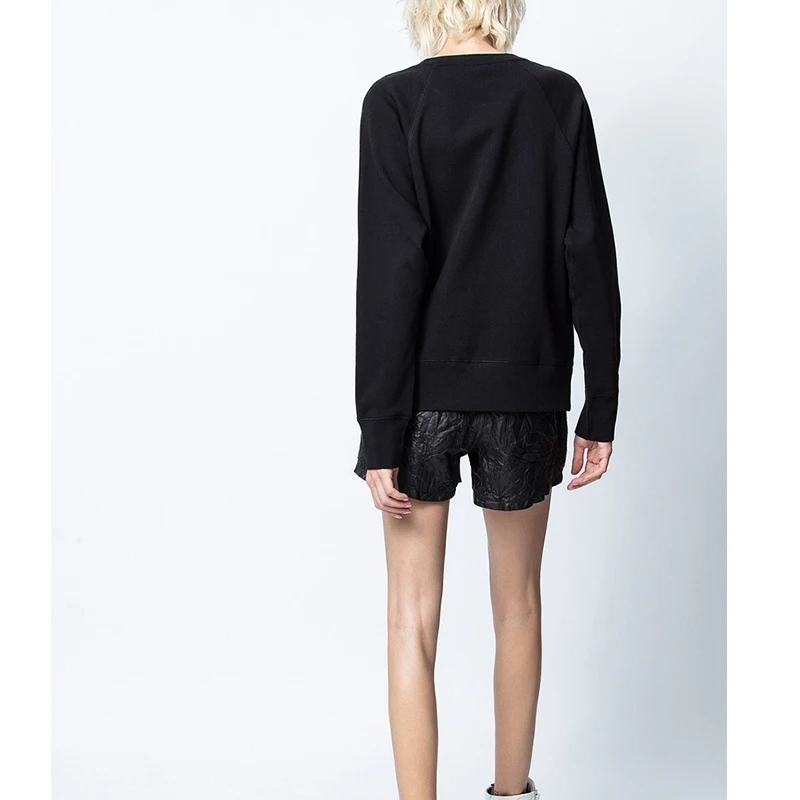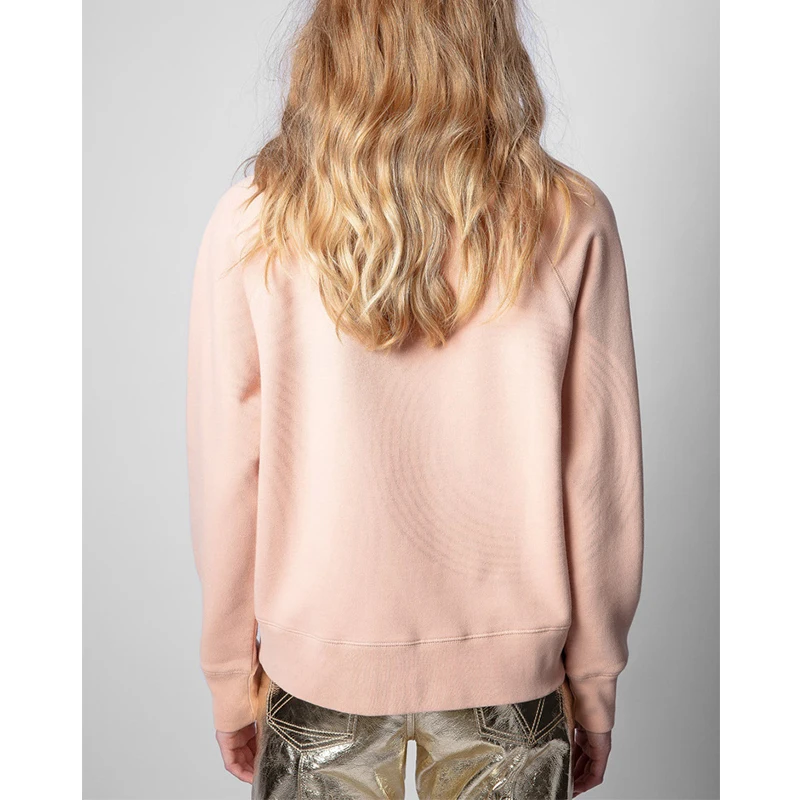 Early autumn new French niche ZV classic letter embroidery pink cotton women's embroidered pullover sweater sweatshirt