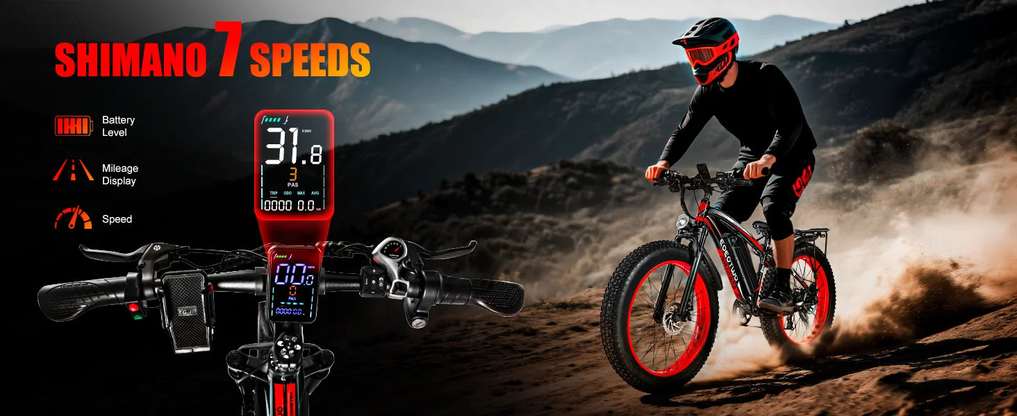 Equipped with a 1000W high-power high-speed motor, delivering a powerful torque of 65N.m, with a top speed of up to 34MPH! Whether it's steep hills, sandy terrain, or forest trails, the E01 provides relentless, powerful performance, allowing you to effortlessly conquer slopes and leave ordinary bicycles far behind.