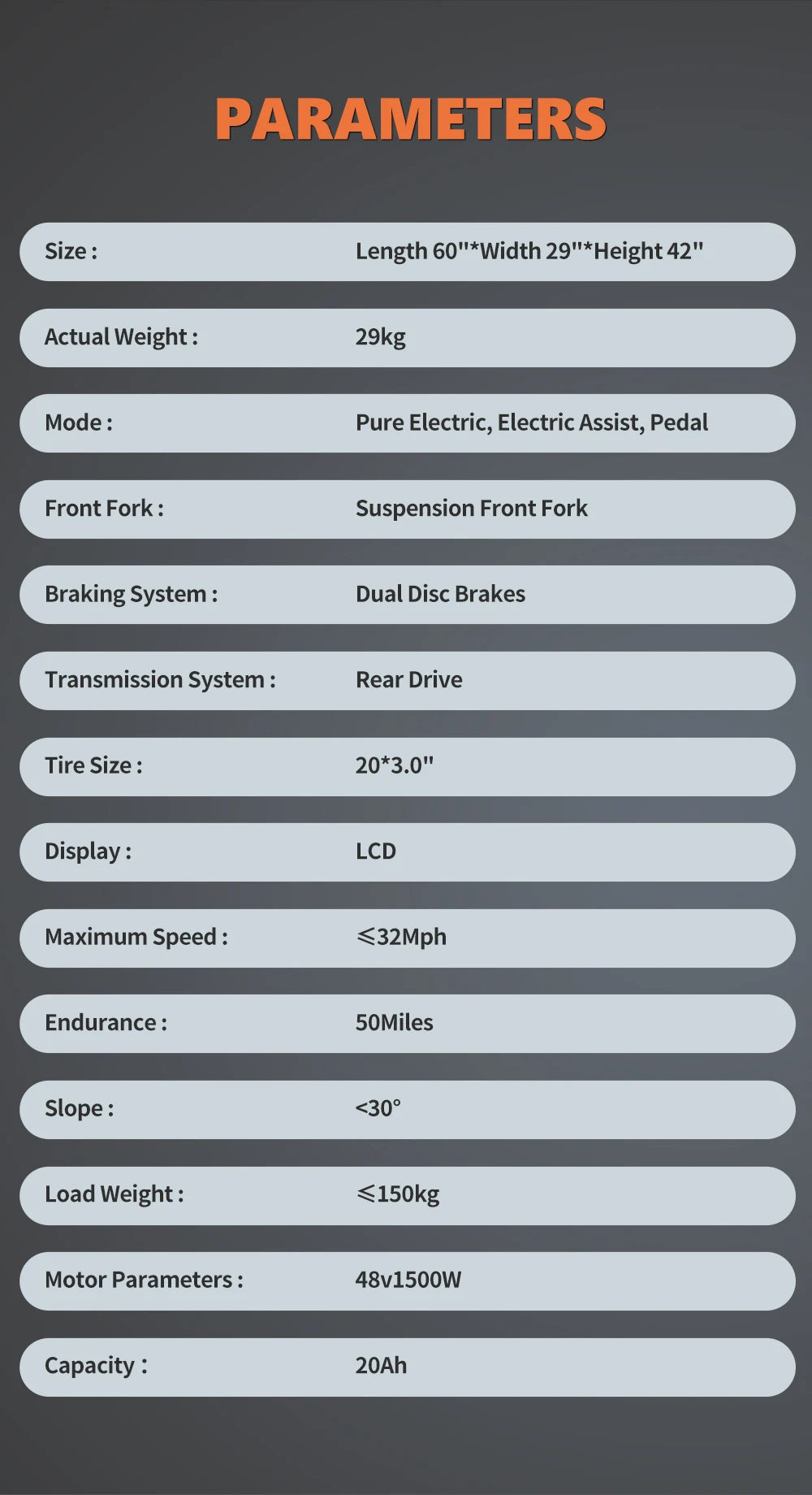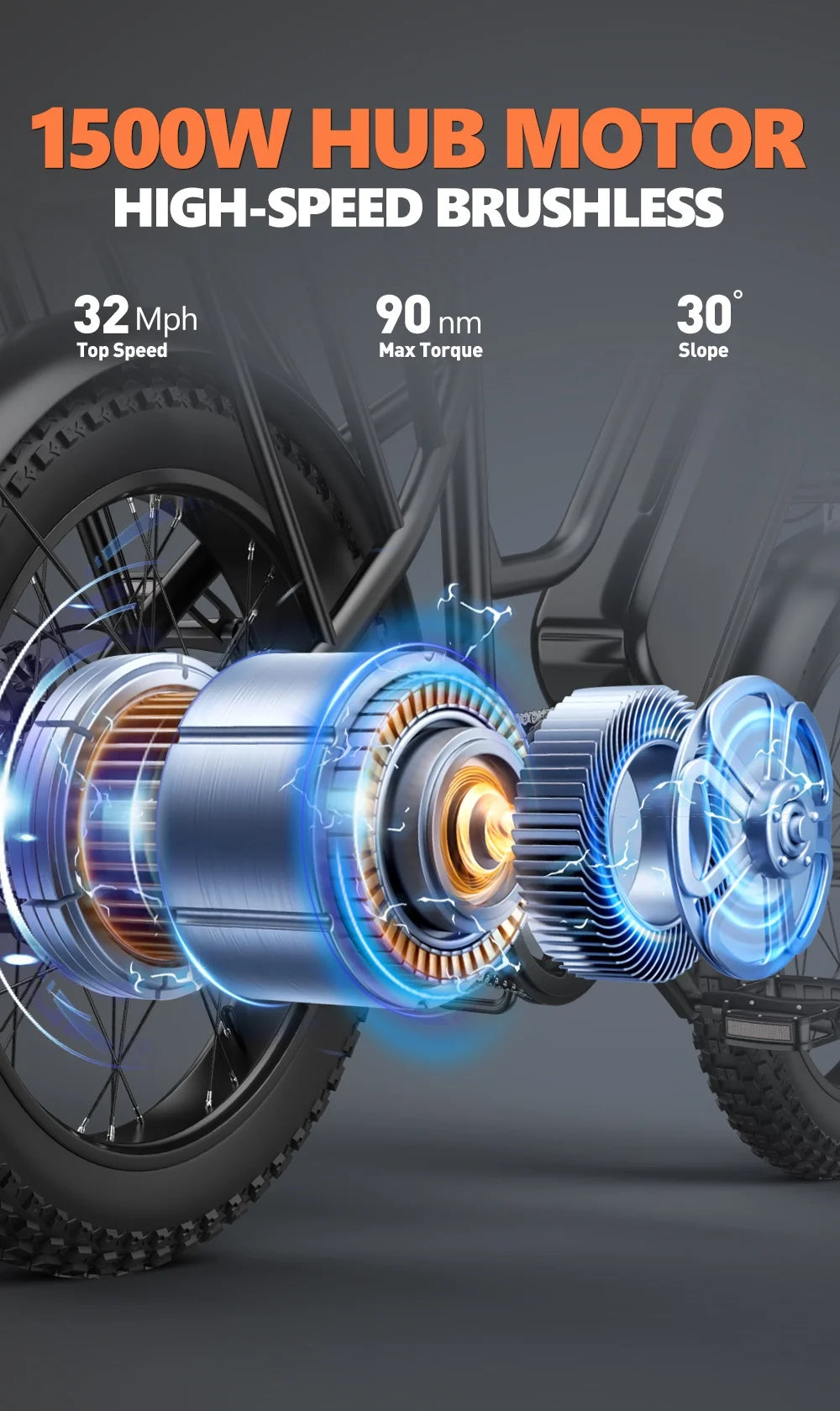 Electric Bike for Adults,20'' 1500W Peak Ebike, Up to 50 Miles 32MPH Electric Mountain Bike with 48V 20AH Removable Battery