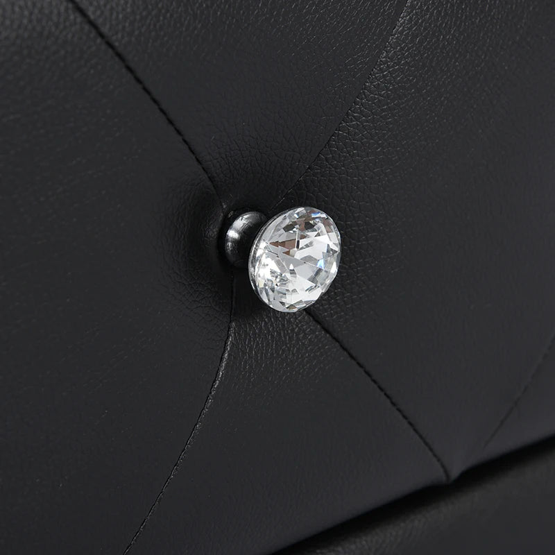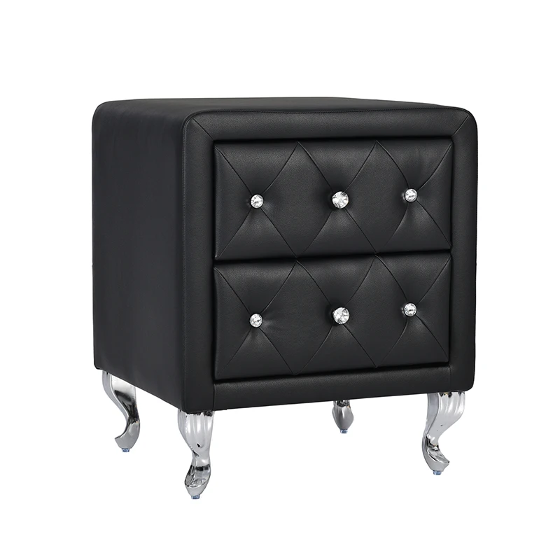 Elegant PU Nightstand with 2 Drawers and Crystal Handle,Fully Assembled Except Legs&Handles,Storage Bedside Table with Metal Leg