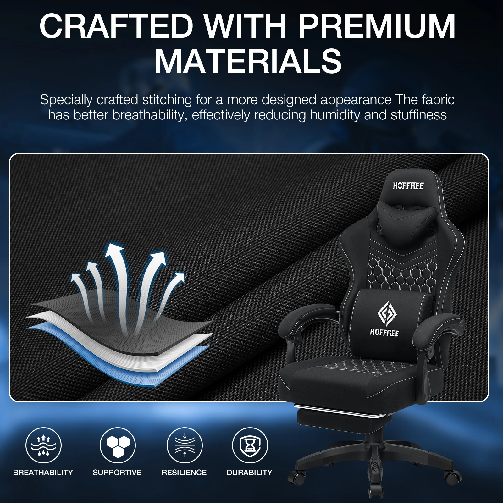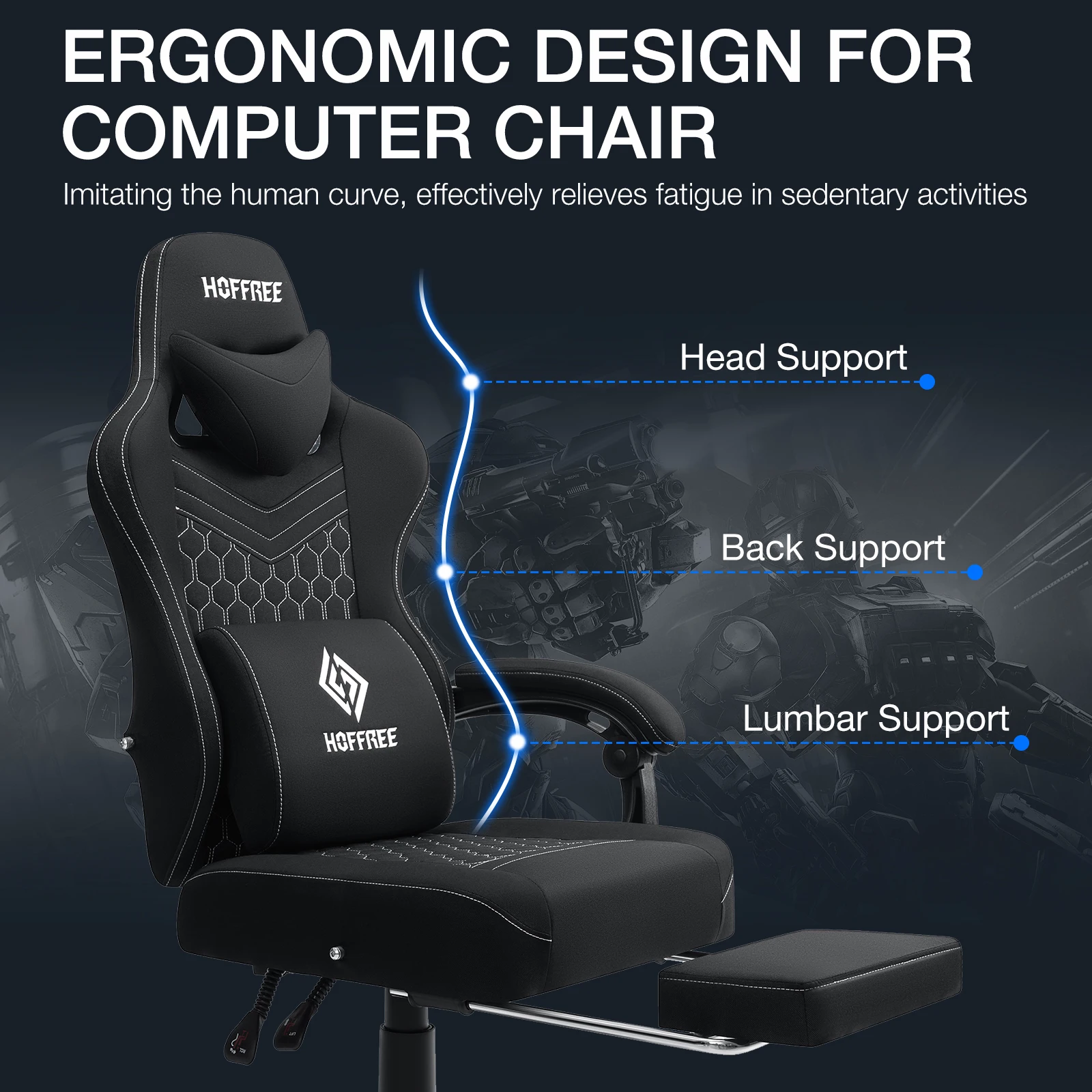 Ergonomic Office Chair With Footrest Lumbar Cushion Bluetooth Speaker 2-Point Massage Height Adjustable Gaming Racing Chair Sofa