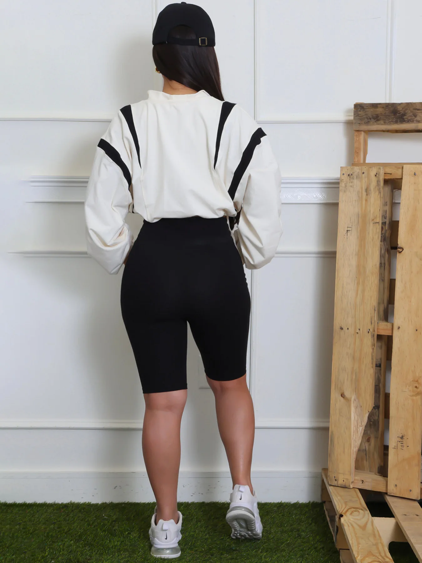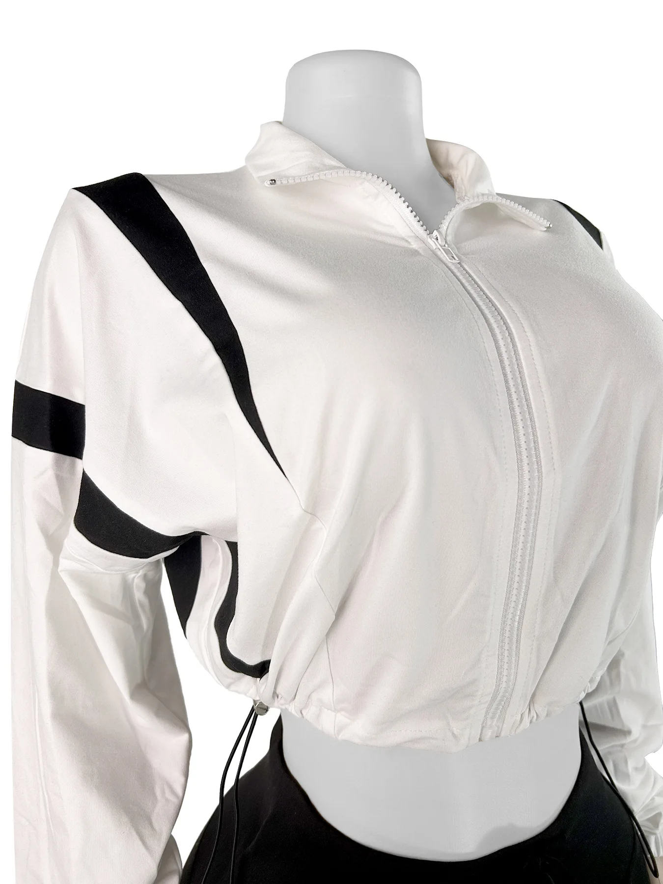 FAGADOER Fashion Sports 2 Pieces Set for Woman Color Block Drawstring Patchwork Crop Top and Pants Outfit Female Streetwear New