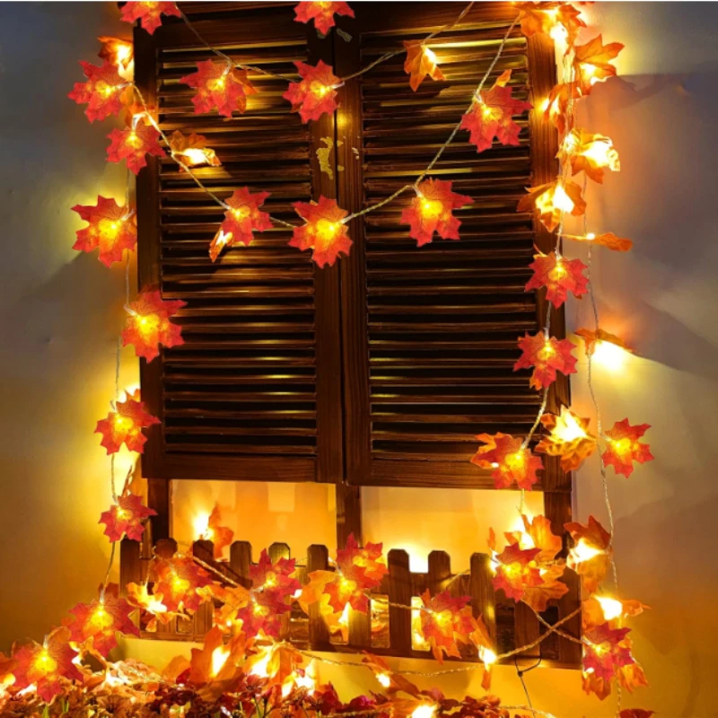 Fall Thanksgiving Artificial Maple Leaf Leaves 10/20LED Light String Garland Home Party DIY Halloween Christmas Decoration 2025