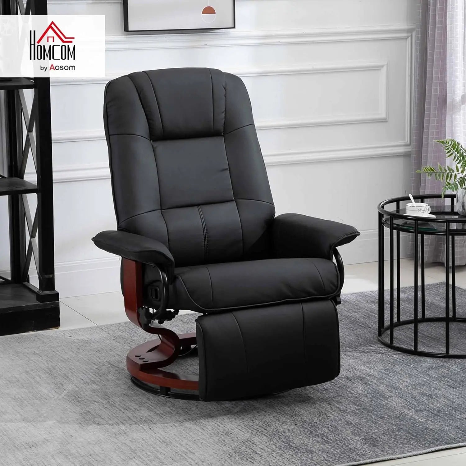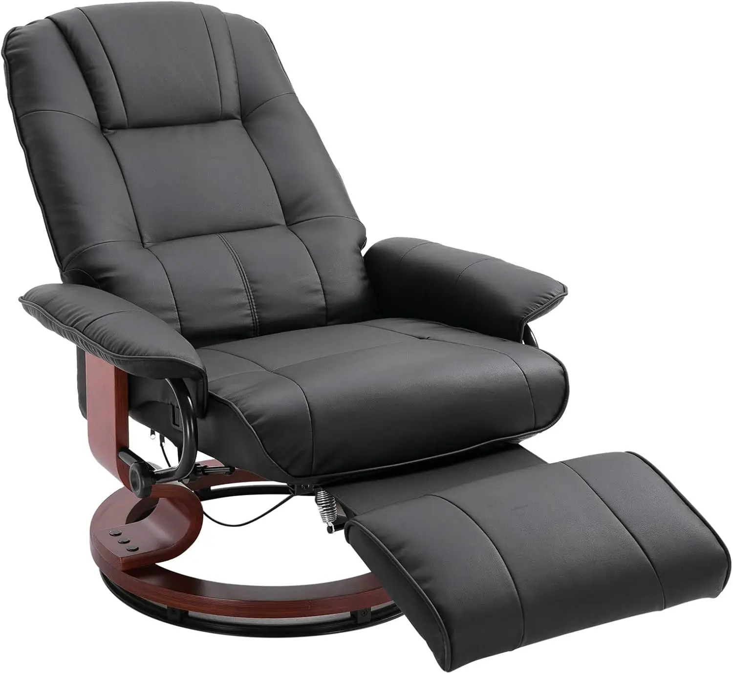 Faux Leather Manual Recliner, Adjustable Swivel Lounge Chair with Footrest, Armrest and Wrapped Wood Base for Living Room, Black