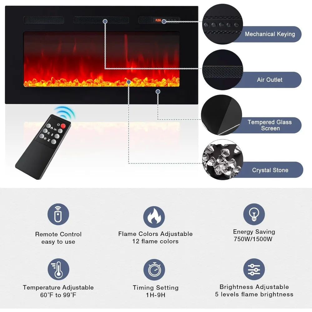- Energy Saving Electric Fireplace: Utilizing LED flame technology that requires less energy and featuring an auto-shutoff timer that can be set for up to eight hours, the fireplace quickly heats up to 400 sq. ft without drying the air. The temperature can be set from 62°F to 82°F. Flame effect and heating function operate independently.