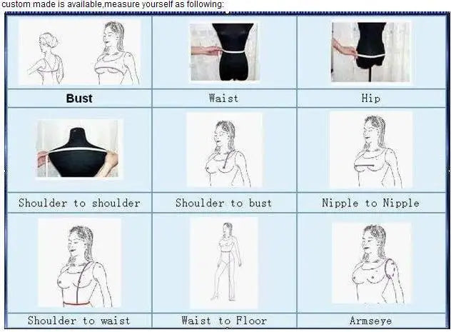 2.If you want to custom made dress,please leave a message to us about your detailed size bust___,waist___,hips___,hollow to floor with shoes___inch or cm and measure yourself as our measure instruction.