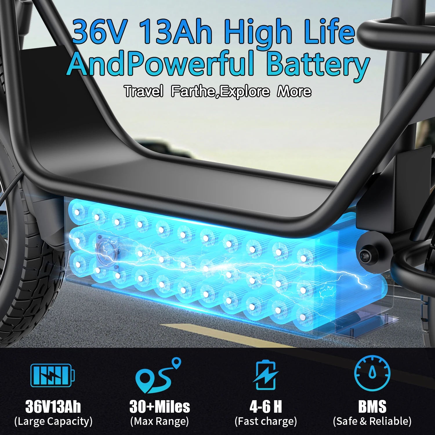 [Foldable and Durable Design] The electric bike has foldable handlebar makes it easy to store and carry, perfect for transporting in your car trunk or on public transport. Its sturdy metal construction supports a maximum weight of 265 pounds, guaranteeing long-term durability and reliability