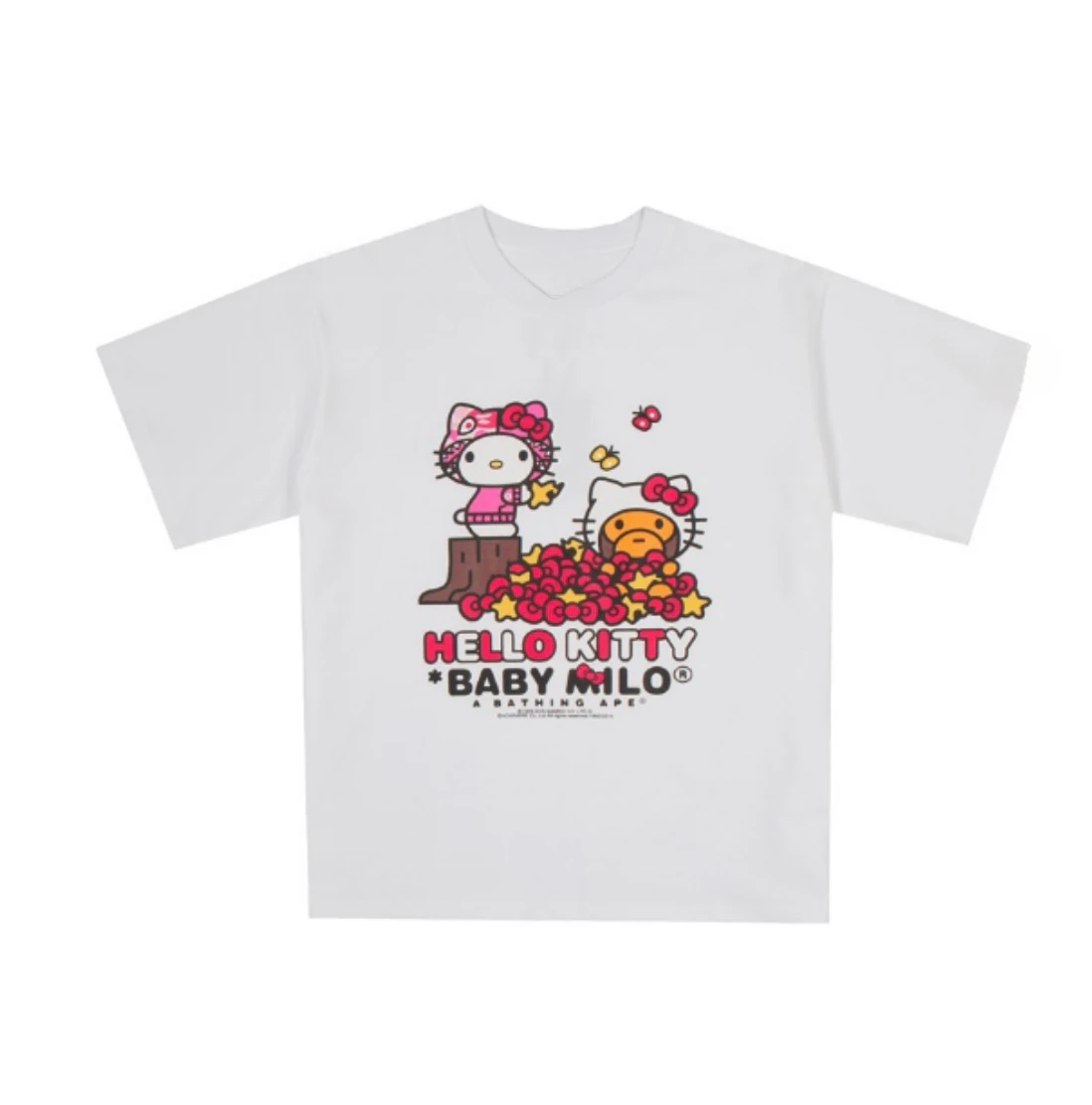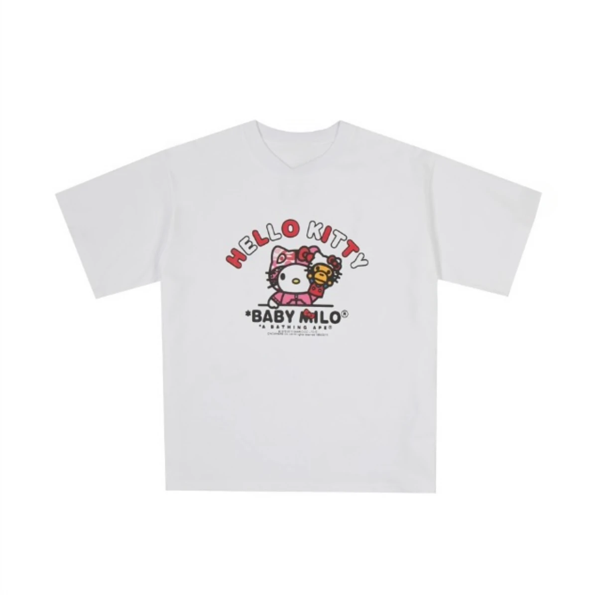 HelloKitty Sanlio Classic INS Letter Print Cotton Loose Male and Female Couple Short Sleeve T-shirt Is for Both Men and Women