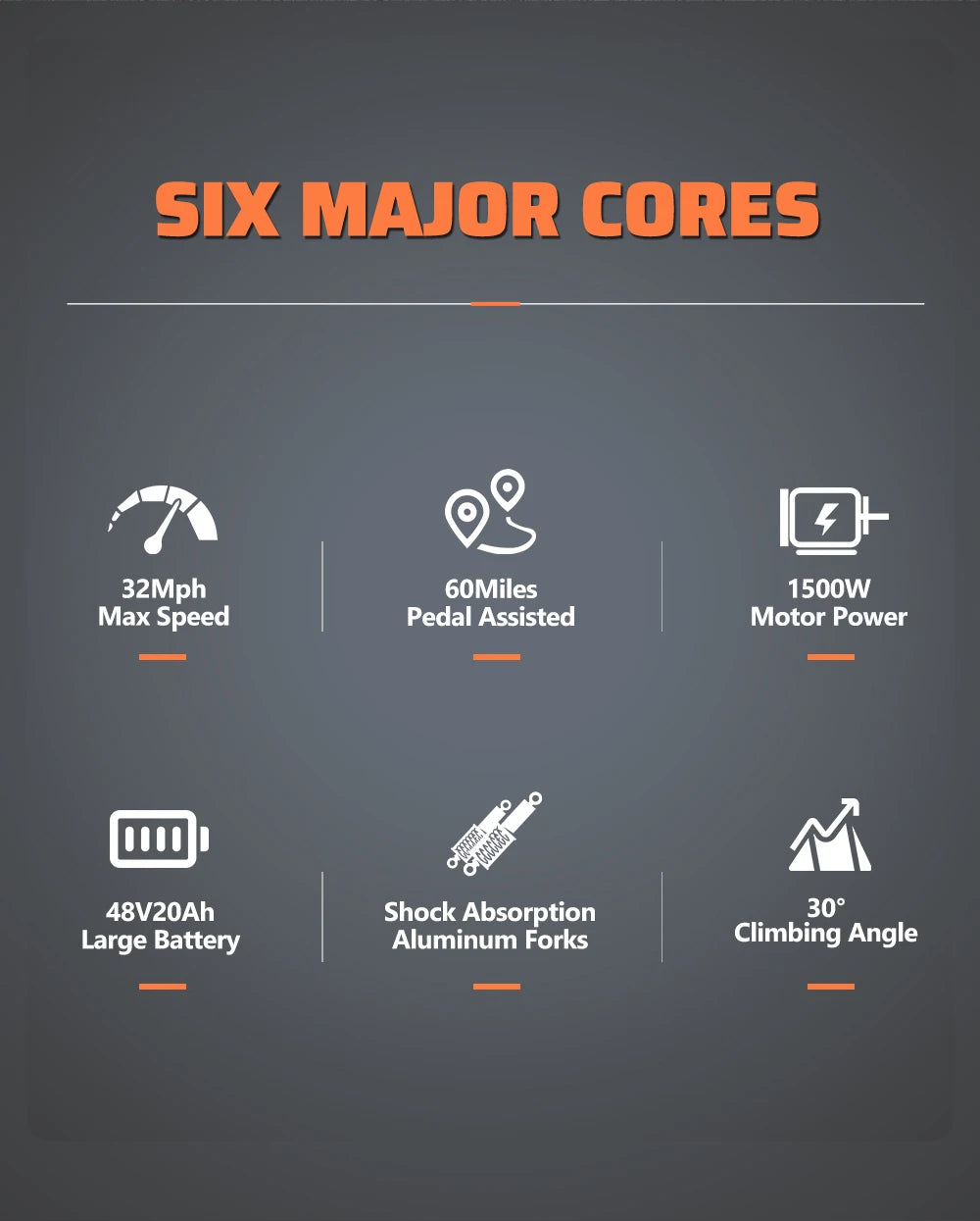 Kickwey LD20 Adult Electric Bike 1500w 32MPH 48V20ah Mountain Electric Bicycle 20 Inch Fat Tire Motorcycle E Bike