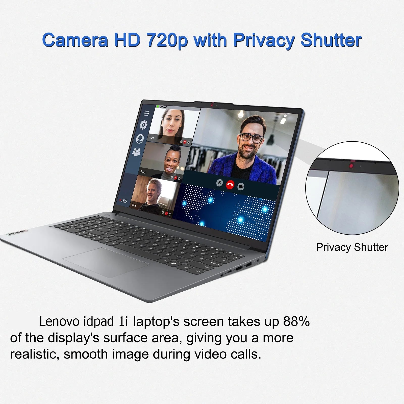 Browse, explore and connect with confidence on the Lenovo IdeaPad 1 powered by an ultra-fast Intel Core i3-1215U Processor. The IdeaPad 1 packs responsive performance in a thin and compact 17.9 mm chassis, making multitasking on-the-go a breeze. Get the most out of your device with a frameless display for more screen and Dolby Audio speakers, along with 10 hours of battery life and rapid charge. Great for video calls, the 720P camera comes with a privacy shutter to keep out spying eyes, as well as Smart Noise Cancelling to eliminate background noise.