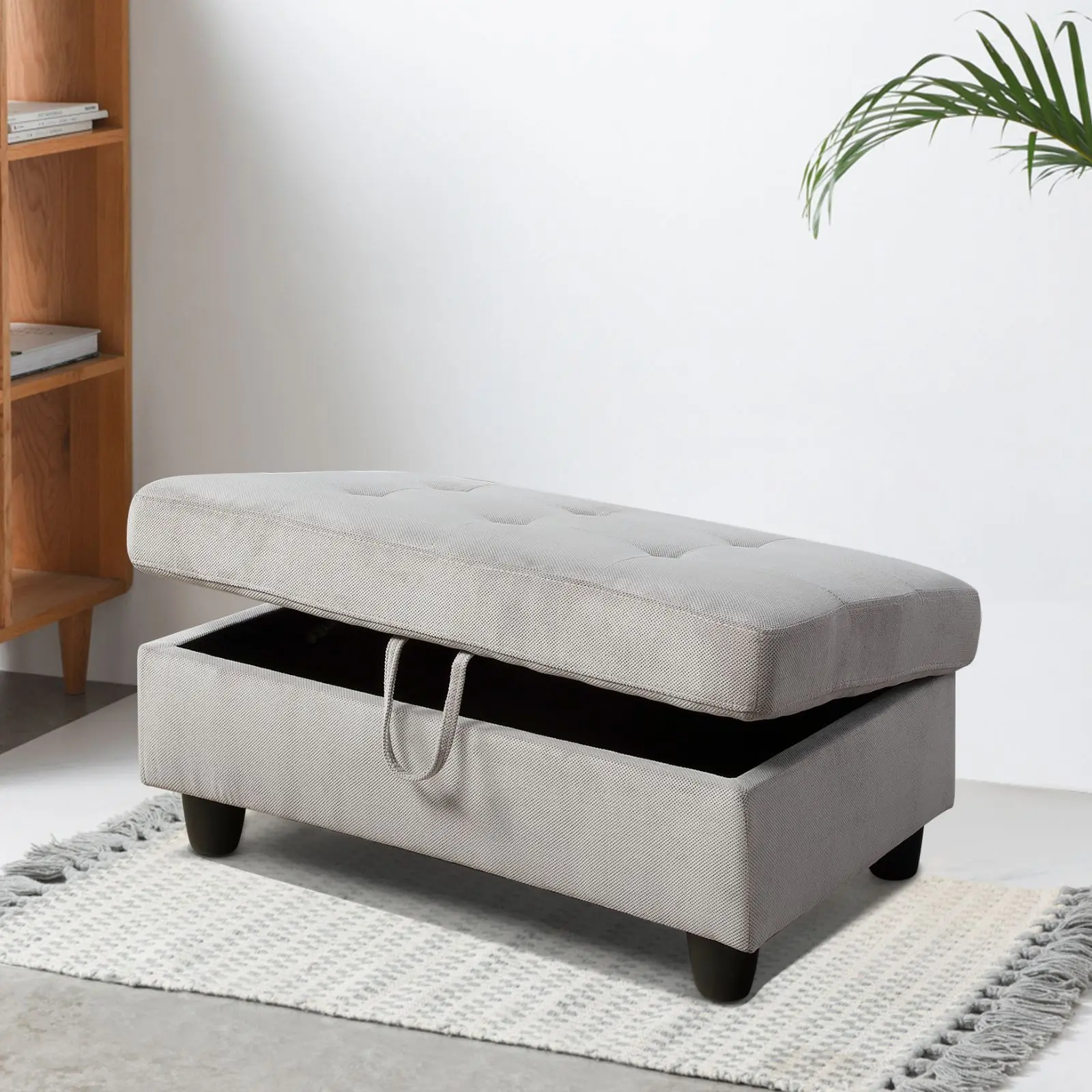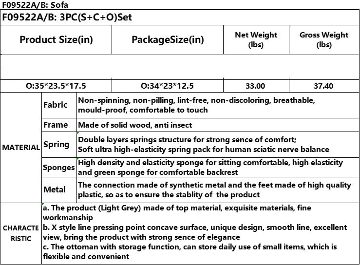 Light Grey Pineapple Fabric Storage Ottoman Living Room Sofa Set