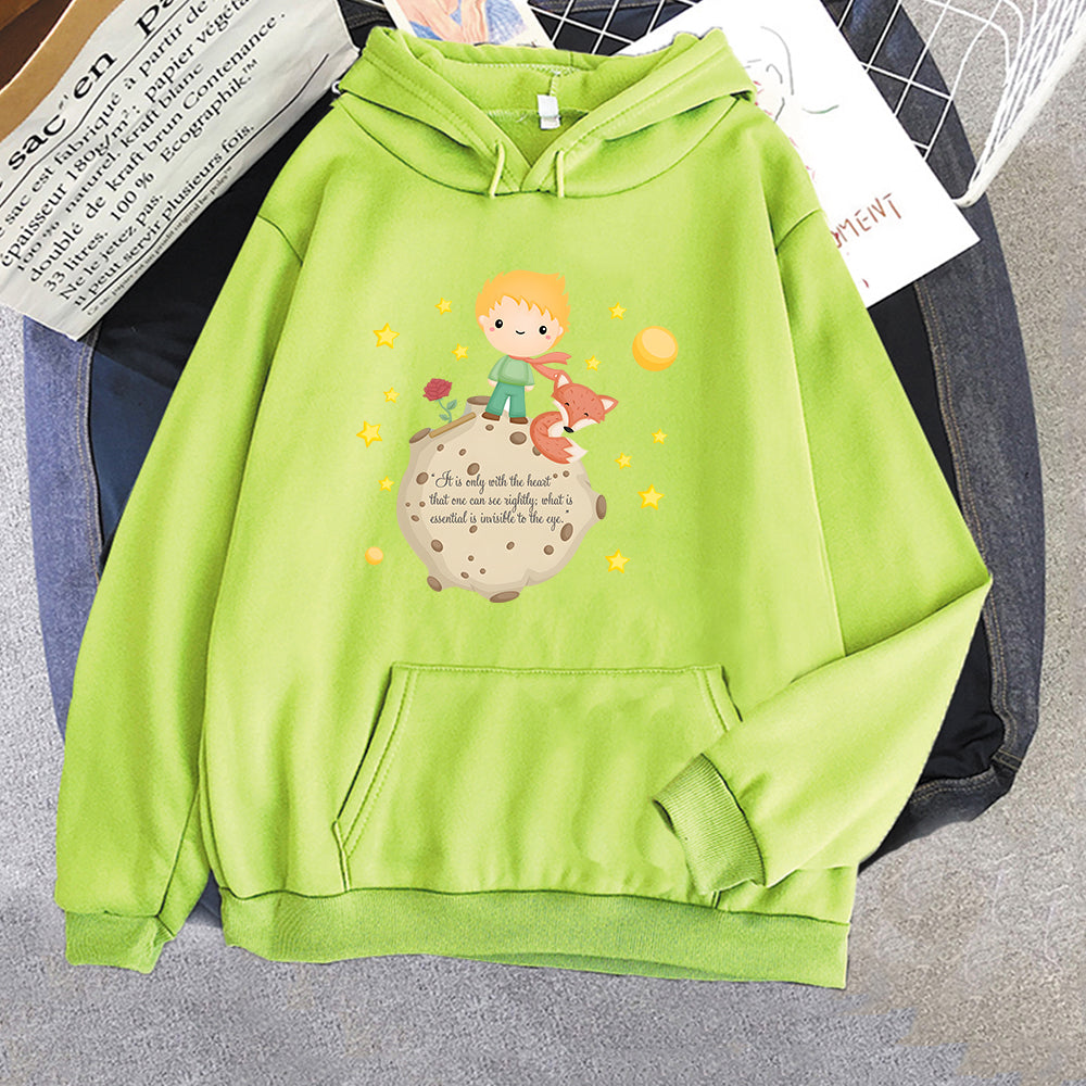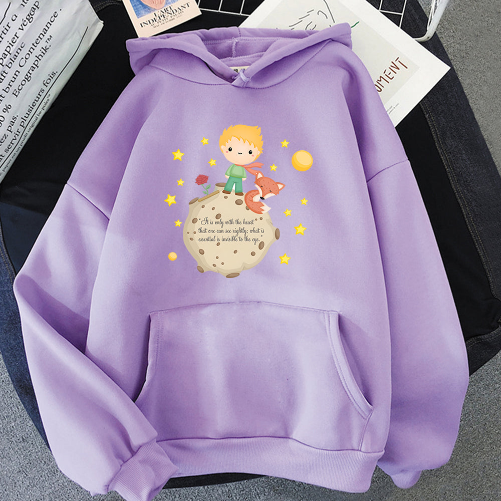 Little Prince and Fox Hoodies Women Casual Sweatshirts Kawaii Cartoon Printing Hoody Cute Clothes for Girls Graphic Hooded Tops