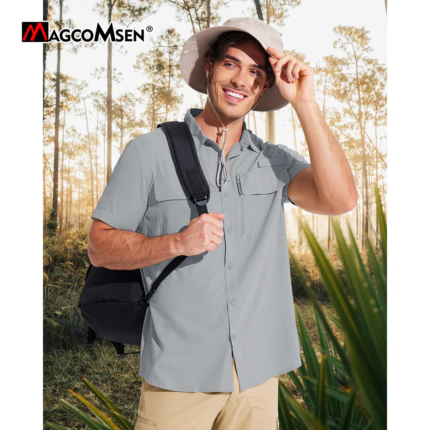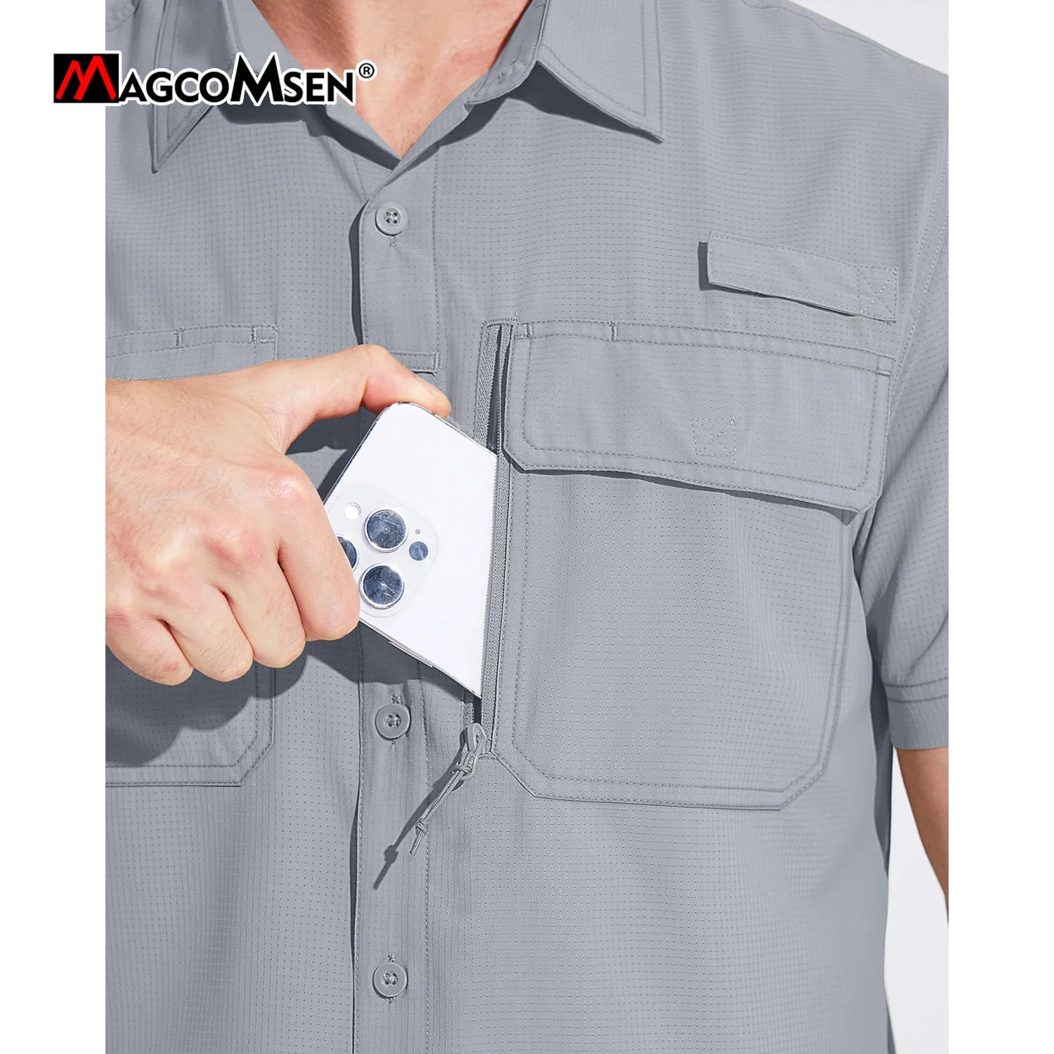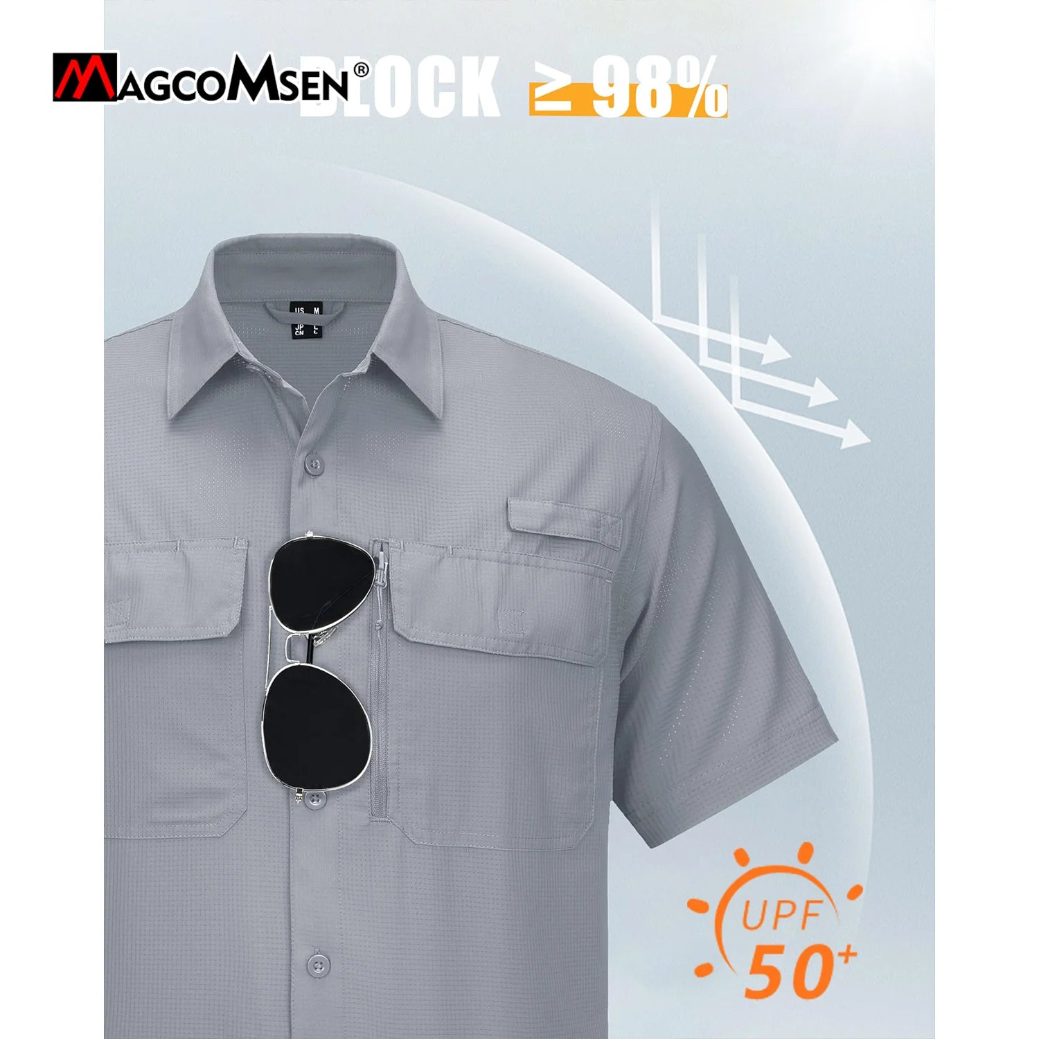 MAGCOMSEN Mesh Breathable Shirt Men's Quick Dry Button Short Sleeves UPF 50+ Sun Protection Hiking Fishing Work Cargo Shirts