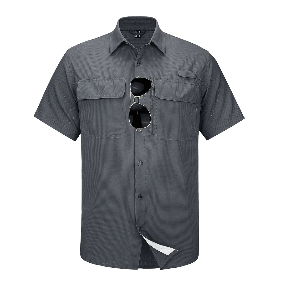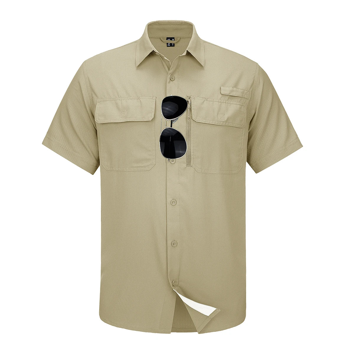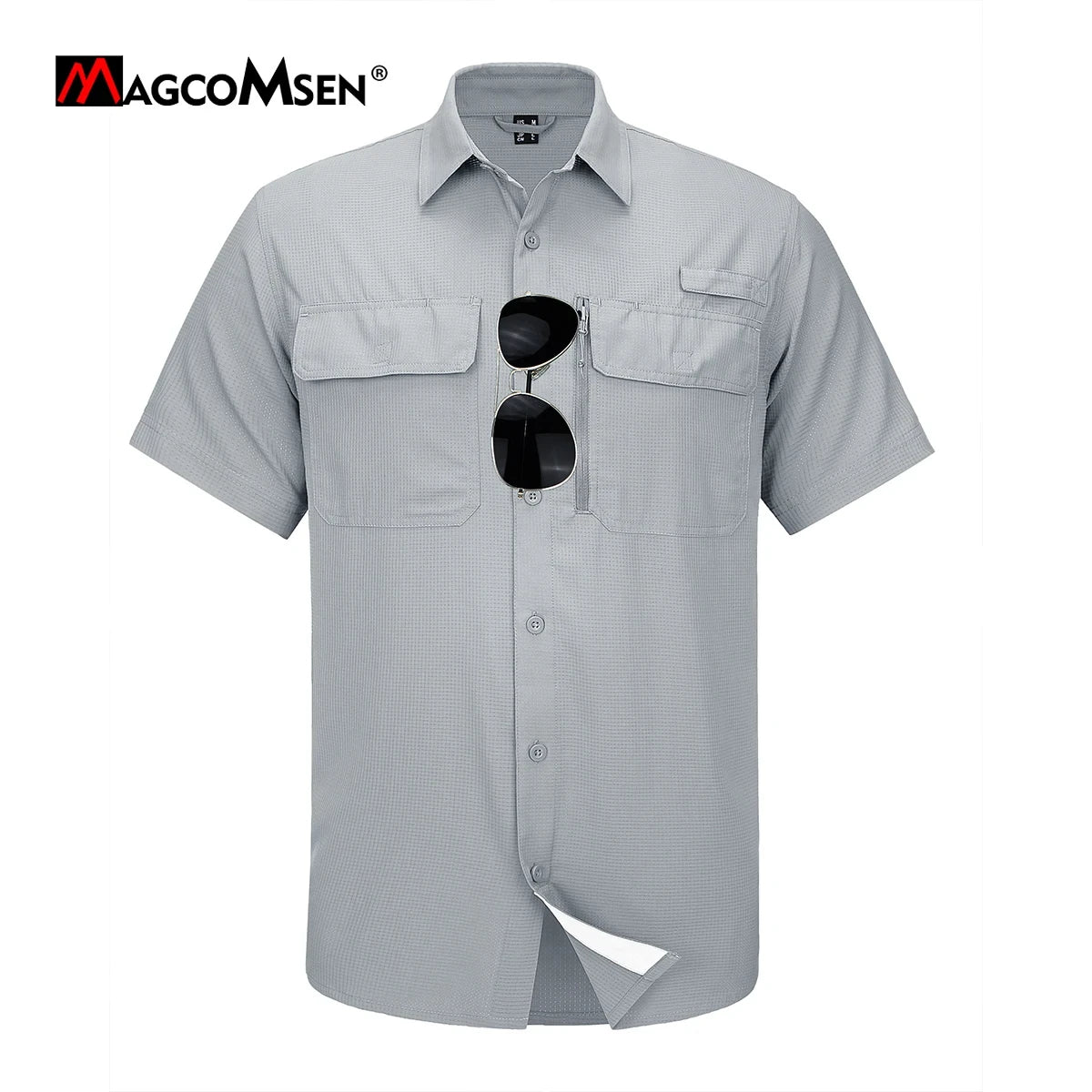 MAGCOMSEN Mesh Breathable Shirt Men's Quick Dry Button Short Sleeves UPF 50+ Sun Protection Hiking Fishing Work Cargo Shirts