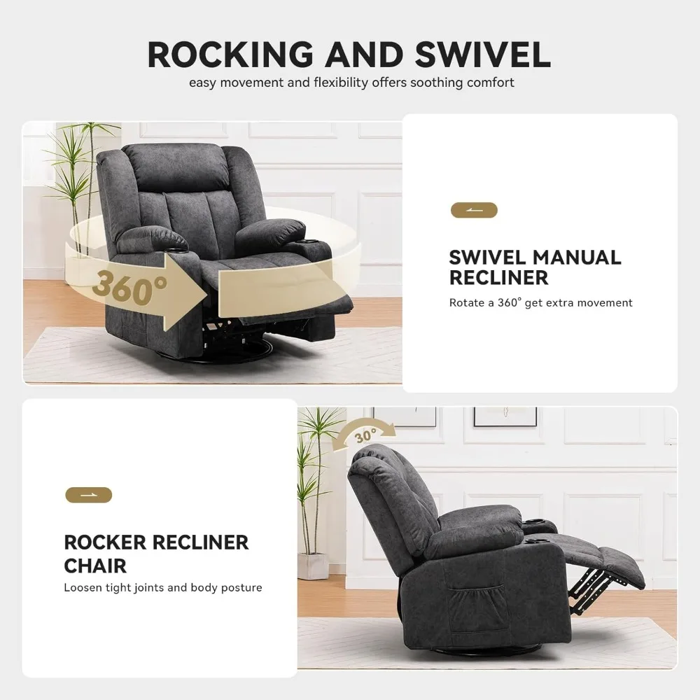 Manual Recliner Chair Set,Fabric Reclining Sofa Chair with Cup Holders, Upholstered Recliner with Side Pockets Suitable for Liv