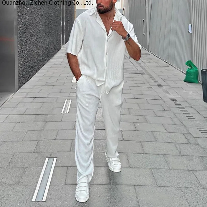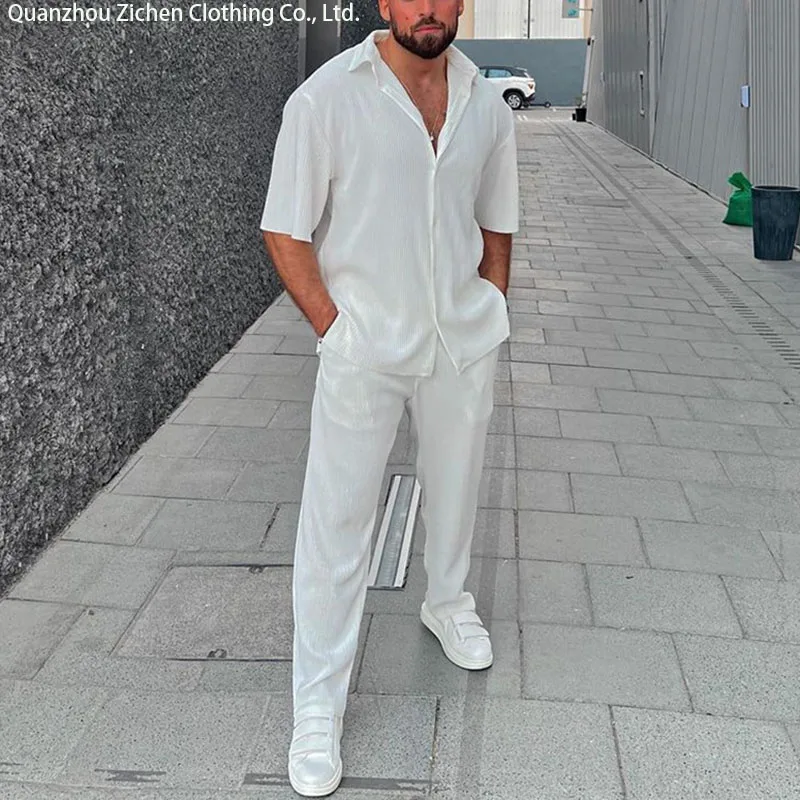 Maz3260 Casual Loose Beach Outfit Solid Color Striped Short Sleeved Set Southeast Asian Men'S Shirt Two-Piece Set
