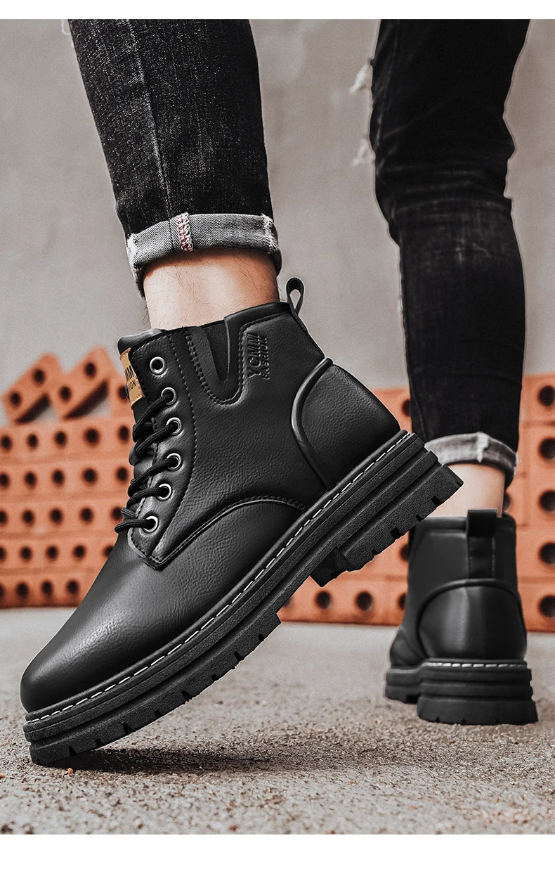Men's boots soft sole four seasons anti slip comfortable high top boots men's thick soled comfortable youth versatile work boots