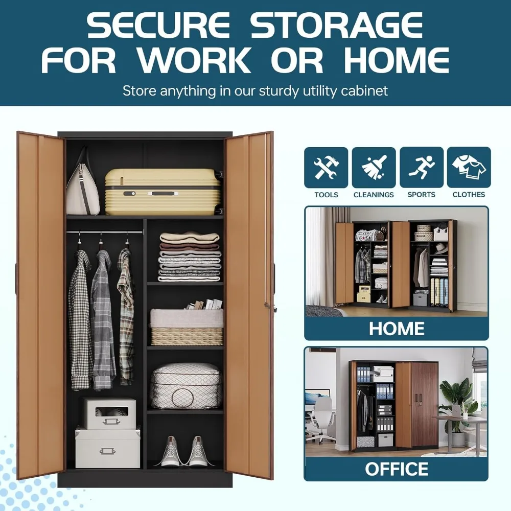 - 【Add Security】: metal wardrobe cabinet is equppied with 2 magnetic doors, 3- point locking system and two keys as standard. Ideal for protecting your privacy and valuable items from theft or snooping.