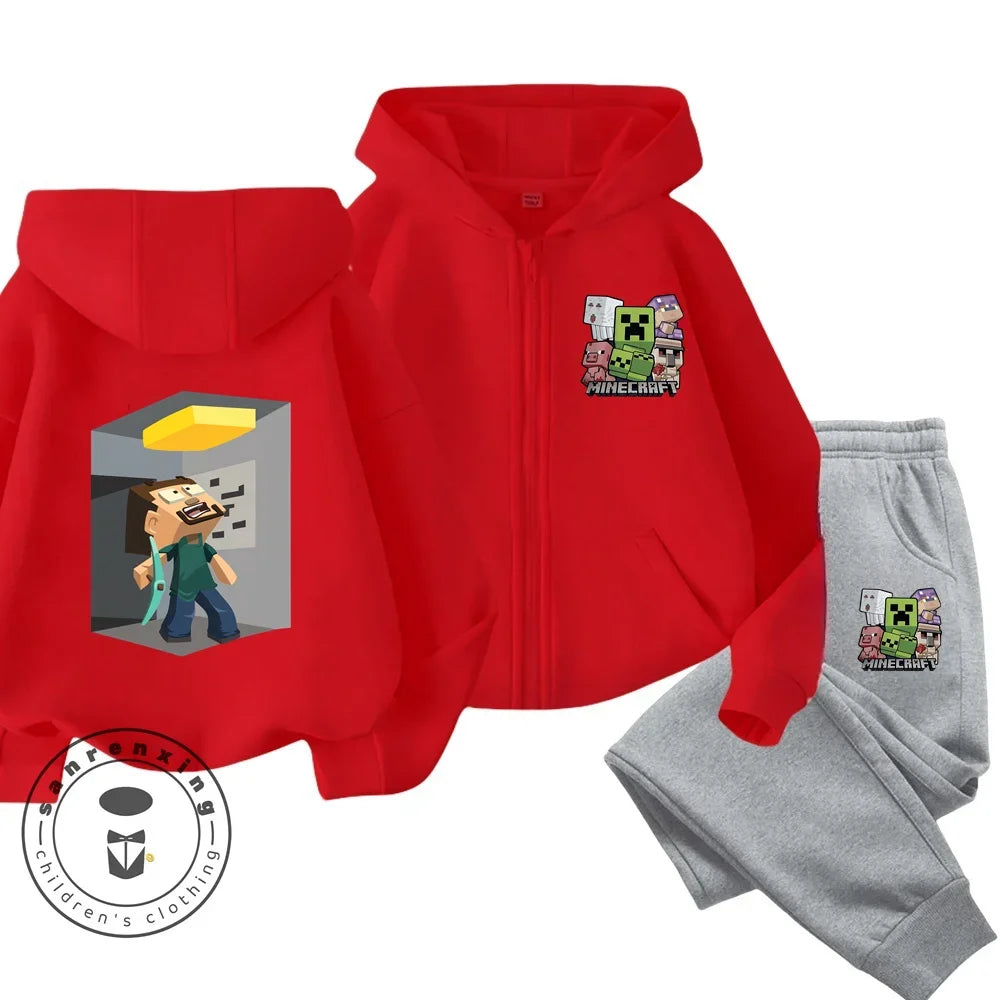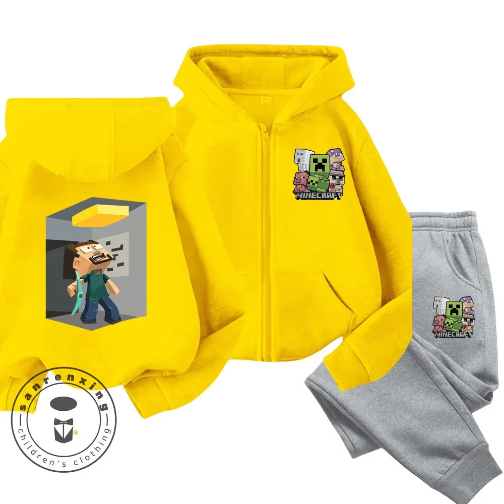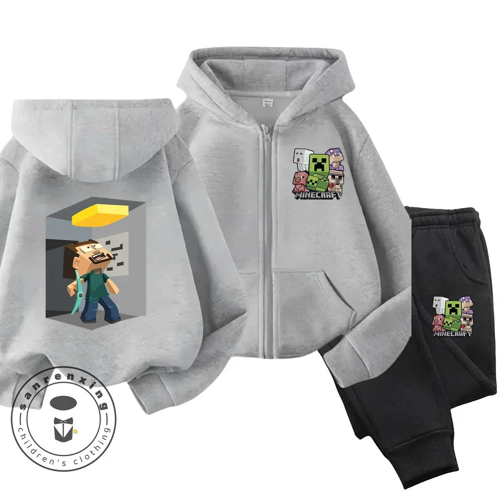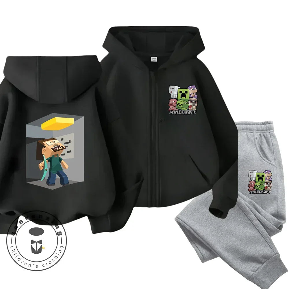 Minecraft Anime Printed Boys and Girls Hoodies Hoodies Zipper Set Casual Sports Fashion Top Pants 3-14 Years Old