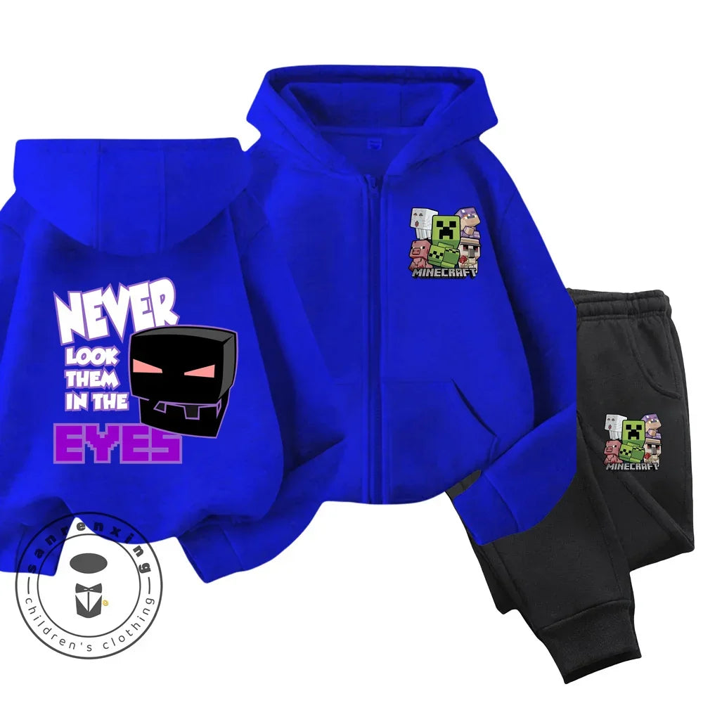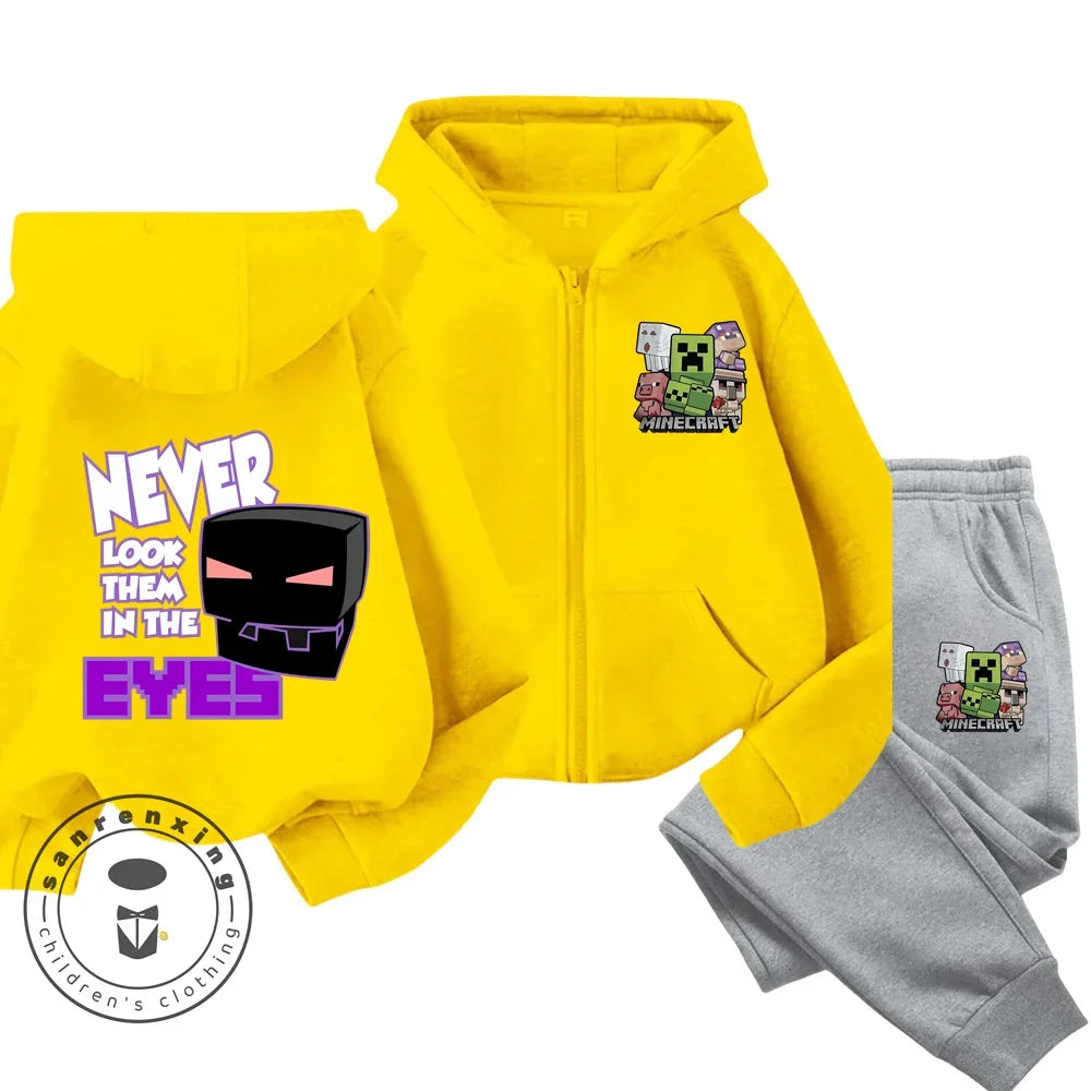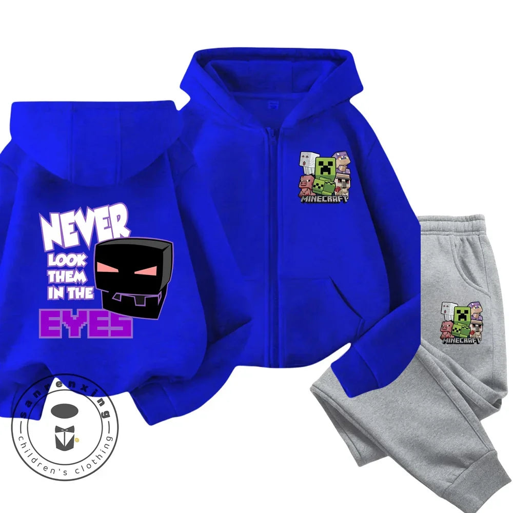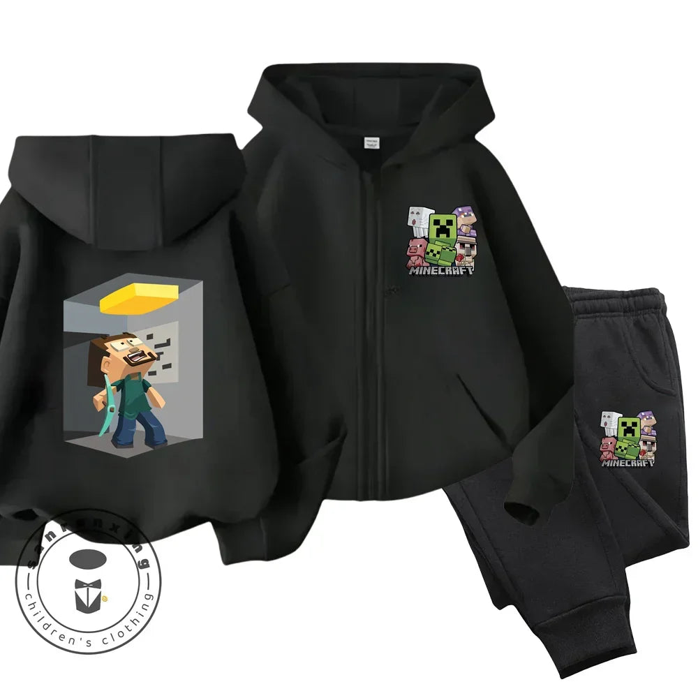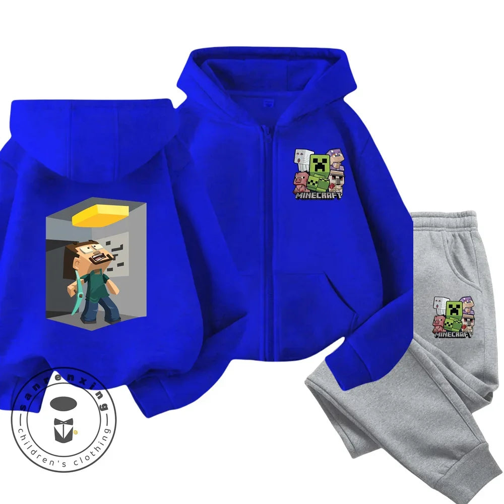 Minecraft Anime Printed Boys and Girls Hoodies Hoodies Zipper Set Casual Sports Fashion Top Pants 3-14 Years Old