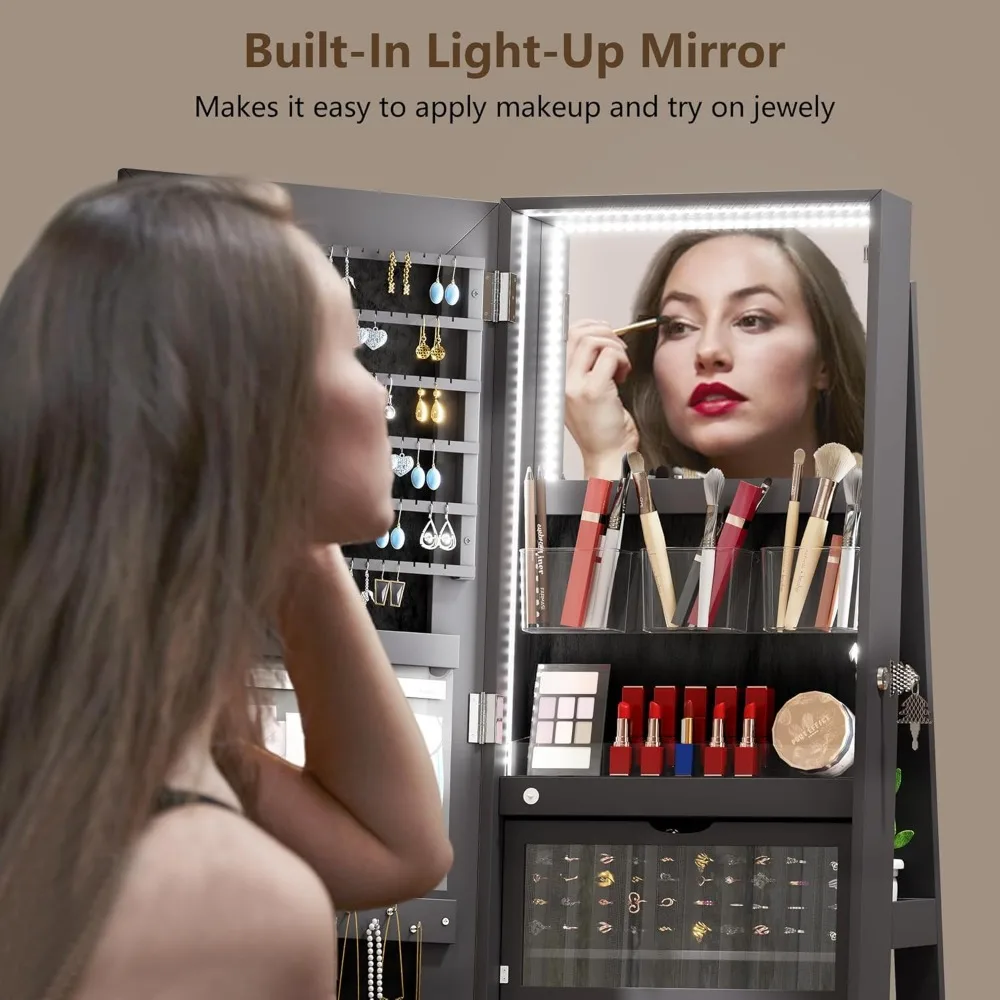 - Ideal Christmas Gift: An exquisite appearance and high functionality meet to create this unique jewelry cabinet with full length mirror. Gift this stand up jewelry box to your loved ones for Christmas or Valentine's Day to light up her day
