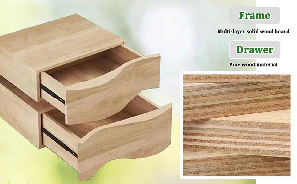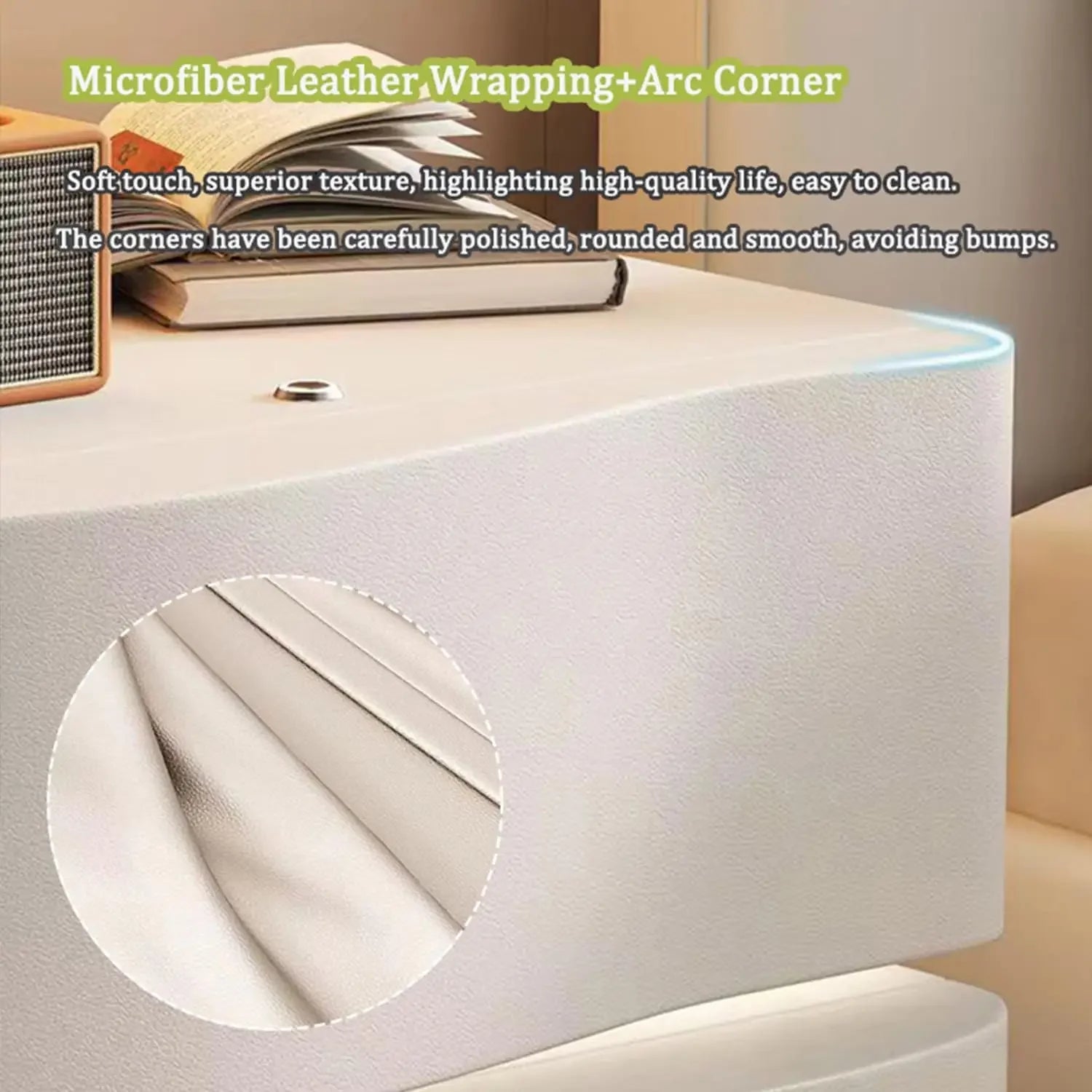 Modern Nightstand with LED Light, Leather Night Stand with Drawer, Solid Wood Bedside Table (2 Drawers, White)