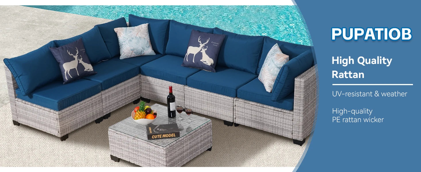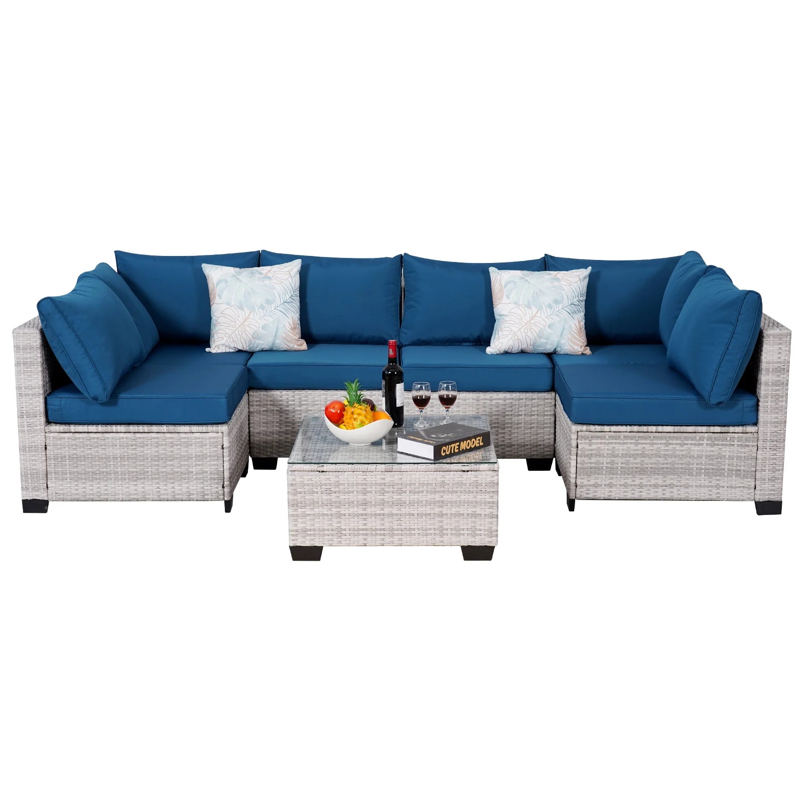 NAGA BAHNA Outdoor Patio Furniture, 7 Piece Outdoor Sectional Sofa PE Rattan Wicker Patio Conversation Sets with Thick Cushions