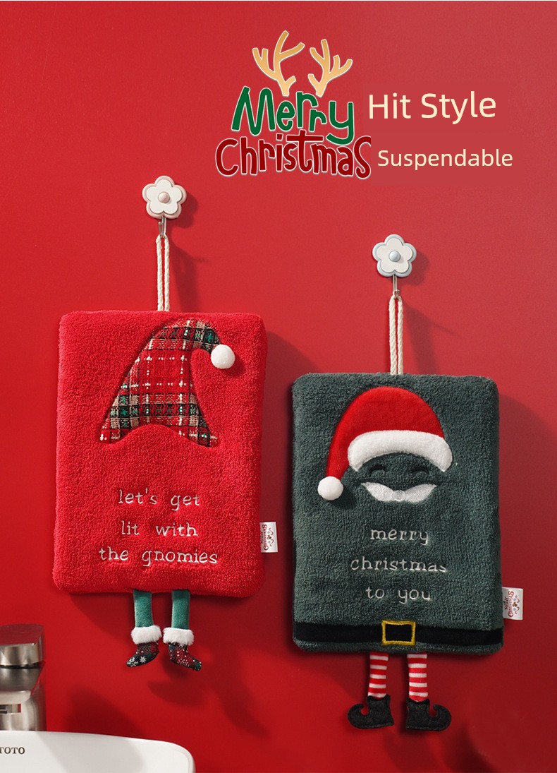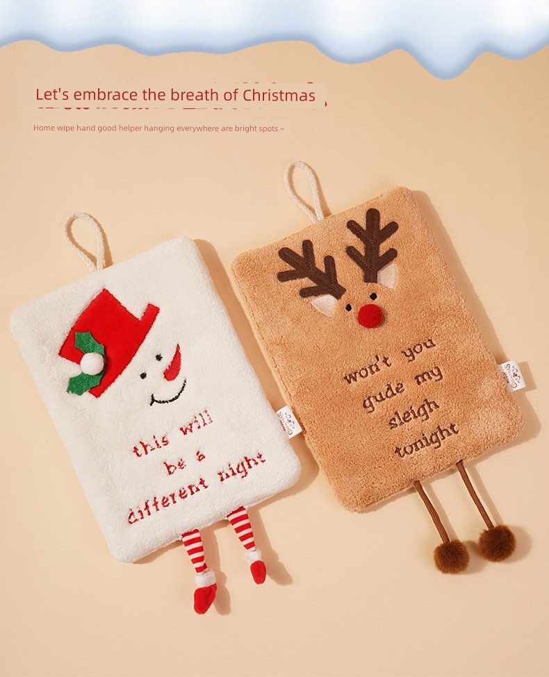 New Arrival Christmas Hand Towel Hanging Thick Coral Fleece Towel Kitchen Absorbent Quick-Drying Rag Cartoon Wiping Towel
