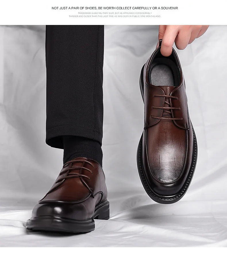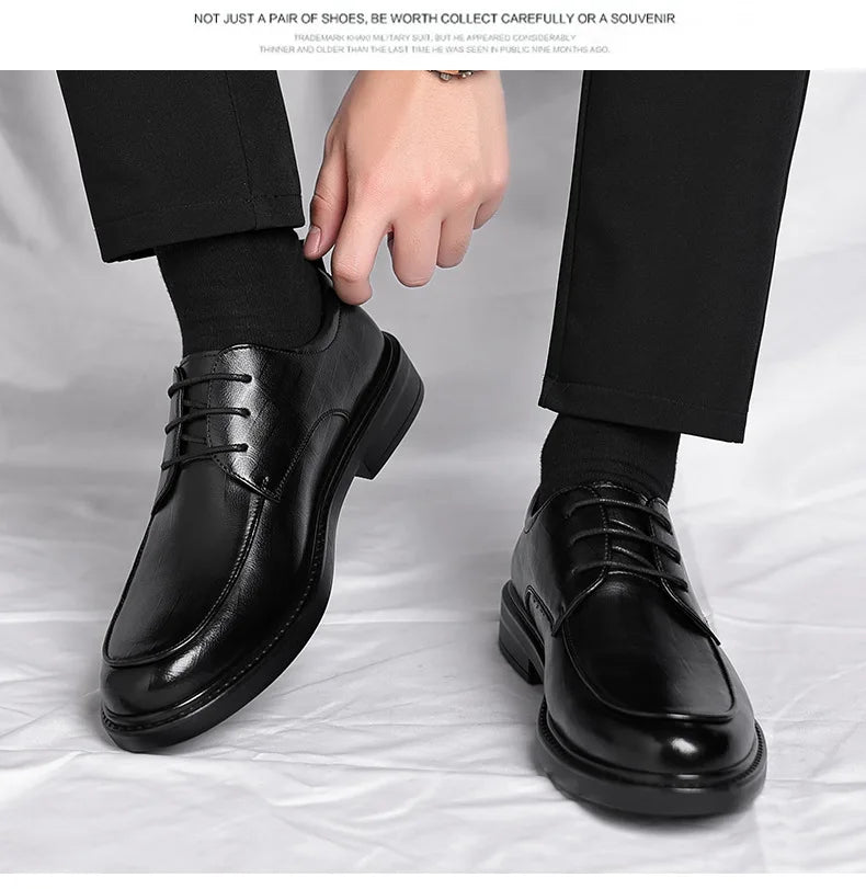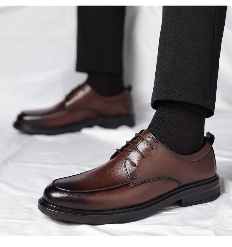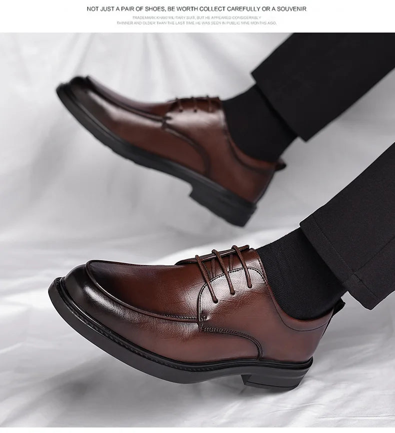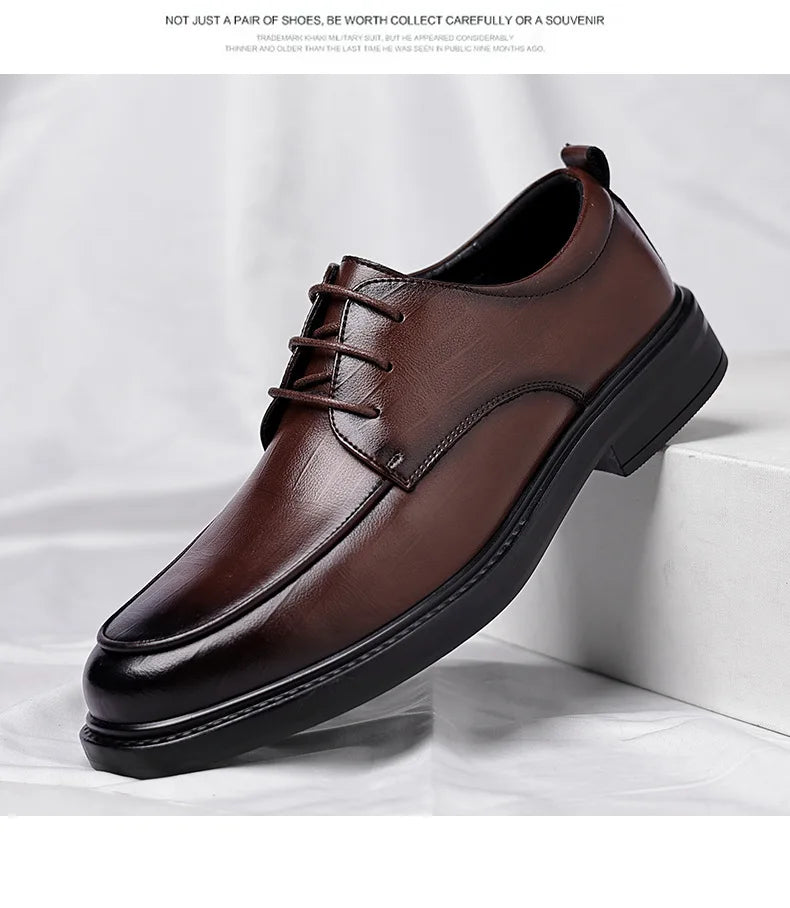 New Men's Formal Shoes Genuine Leather Fashion Dress Shoes Men‘s Italian Style Business Office Wedding Solid Color Lace Up Shoes