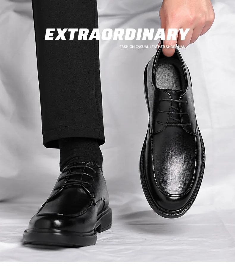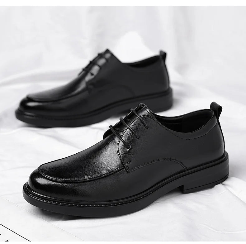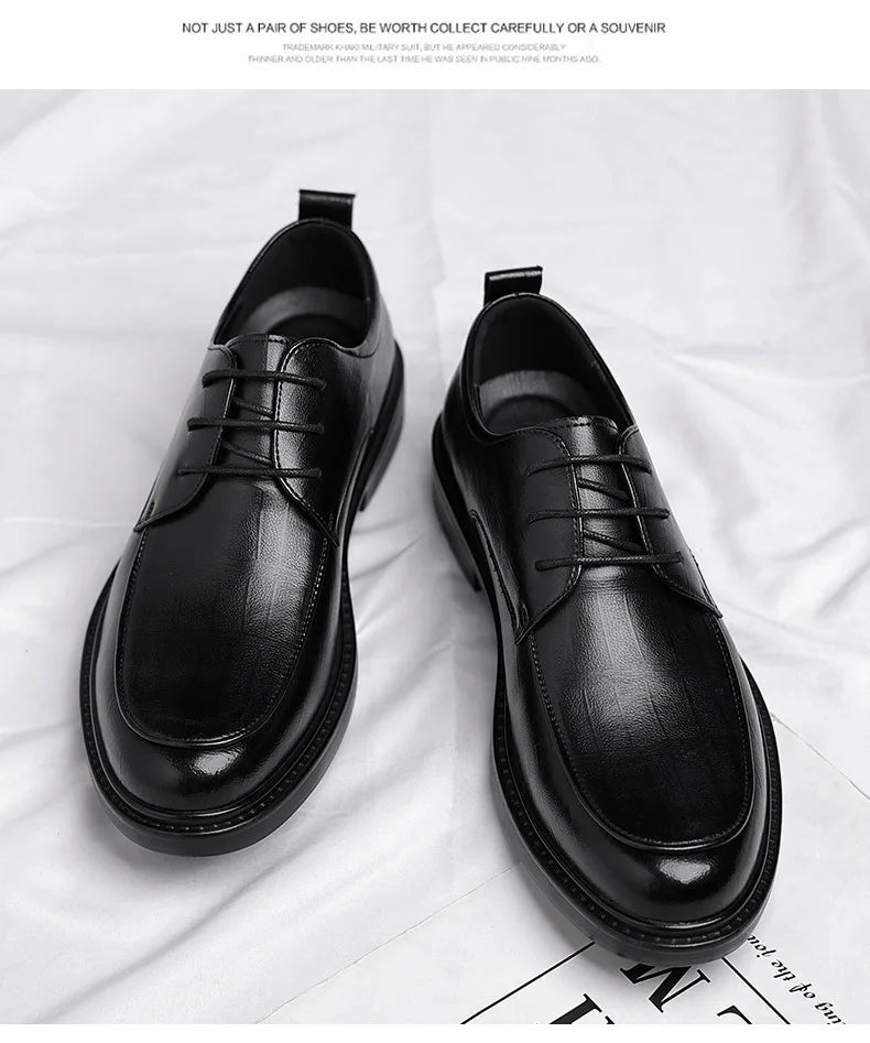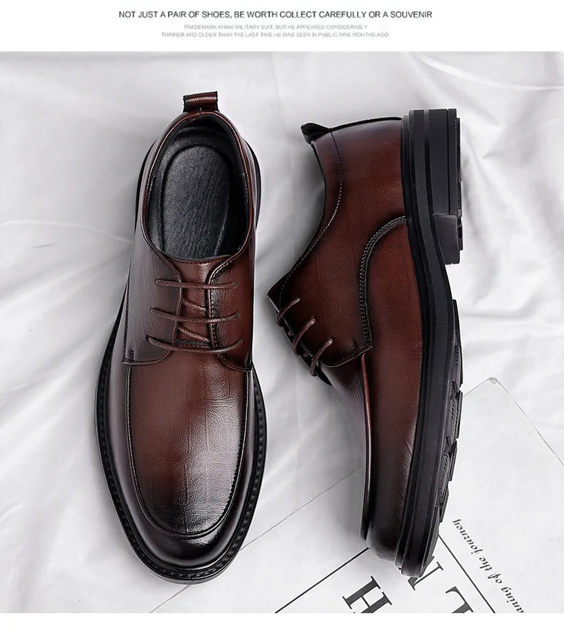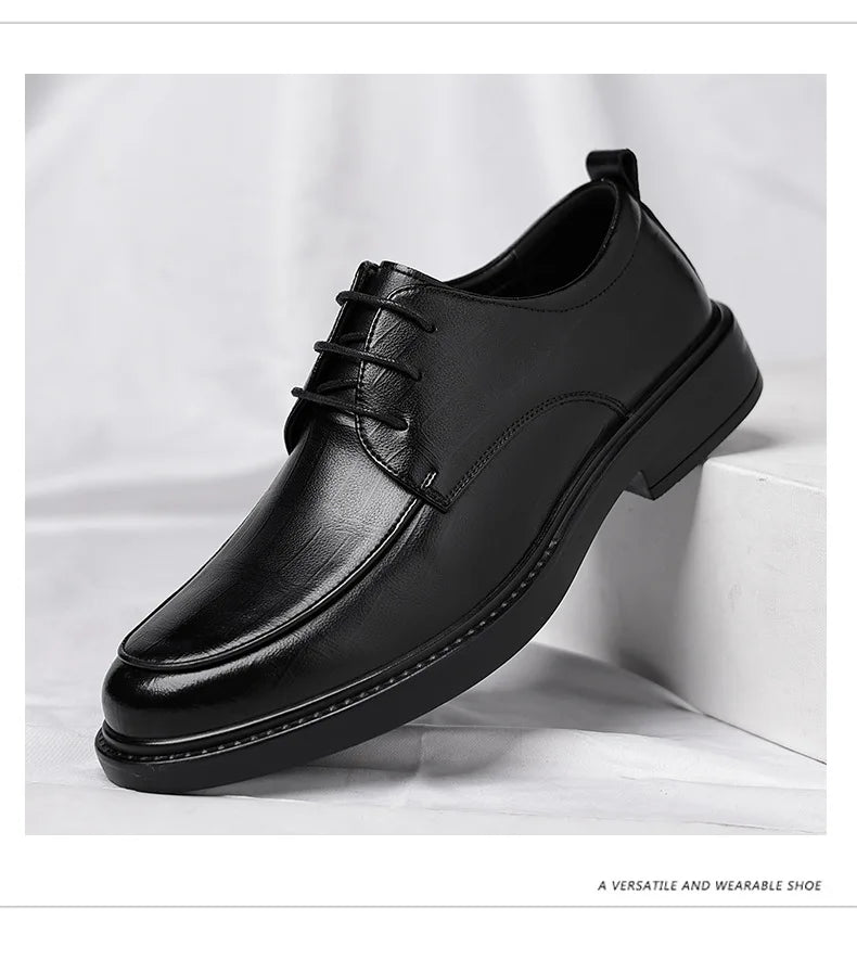 New Men's Formal Shoes Genuine Leather Fashion Dress Shoes Men‘s Italian Style Business Office Wedding Solid Color Lace Up Shoes