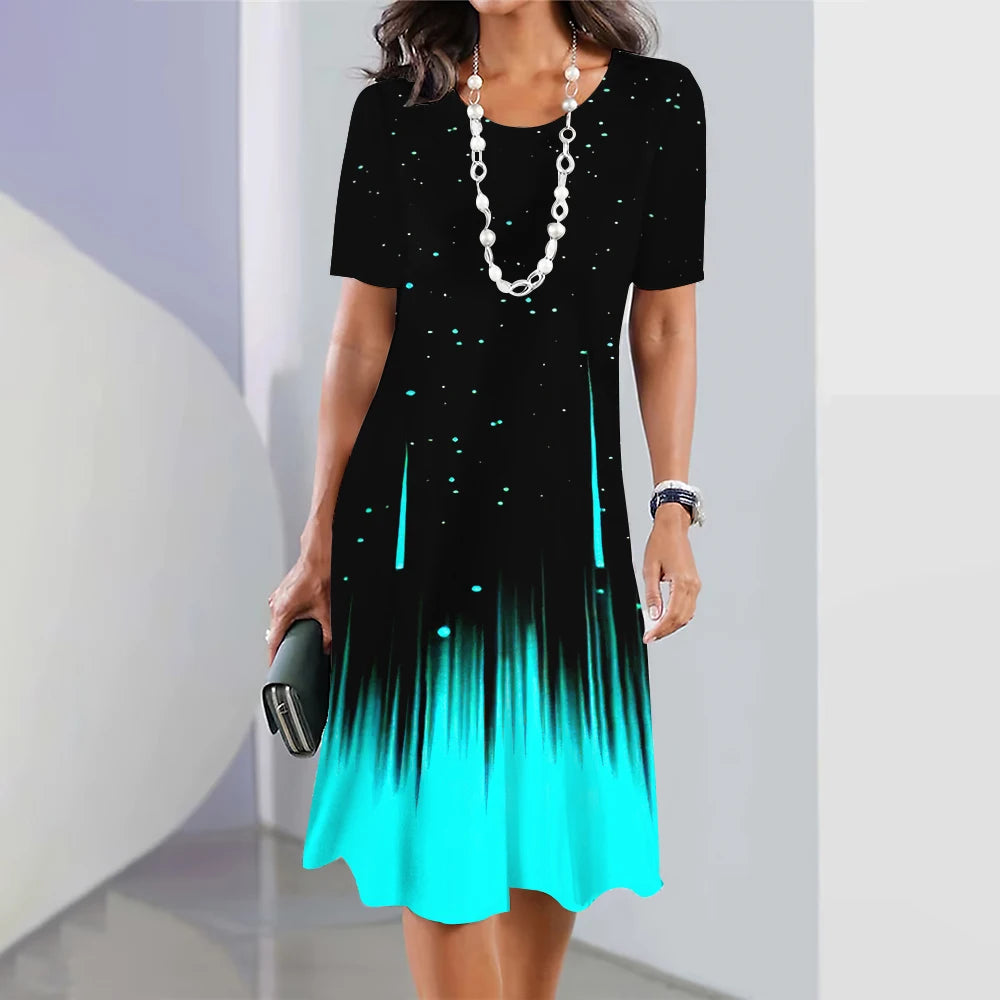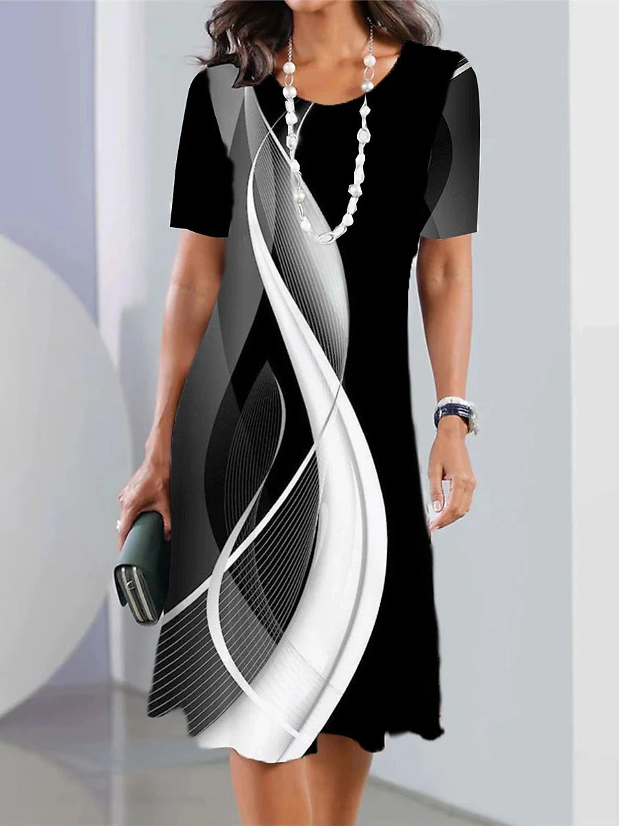 New Women's Dresses Striped Printed Elegant Casual O Neck Short Sleeve Dresses Fashion Ladies Plus Size Clothing