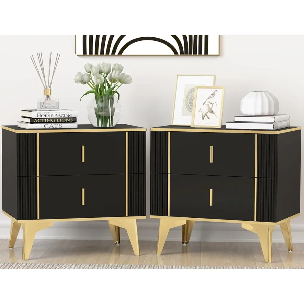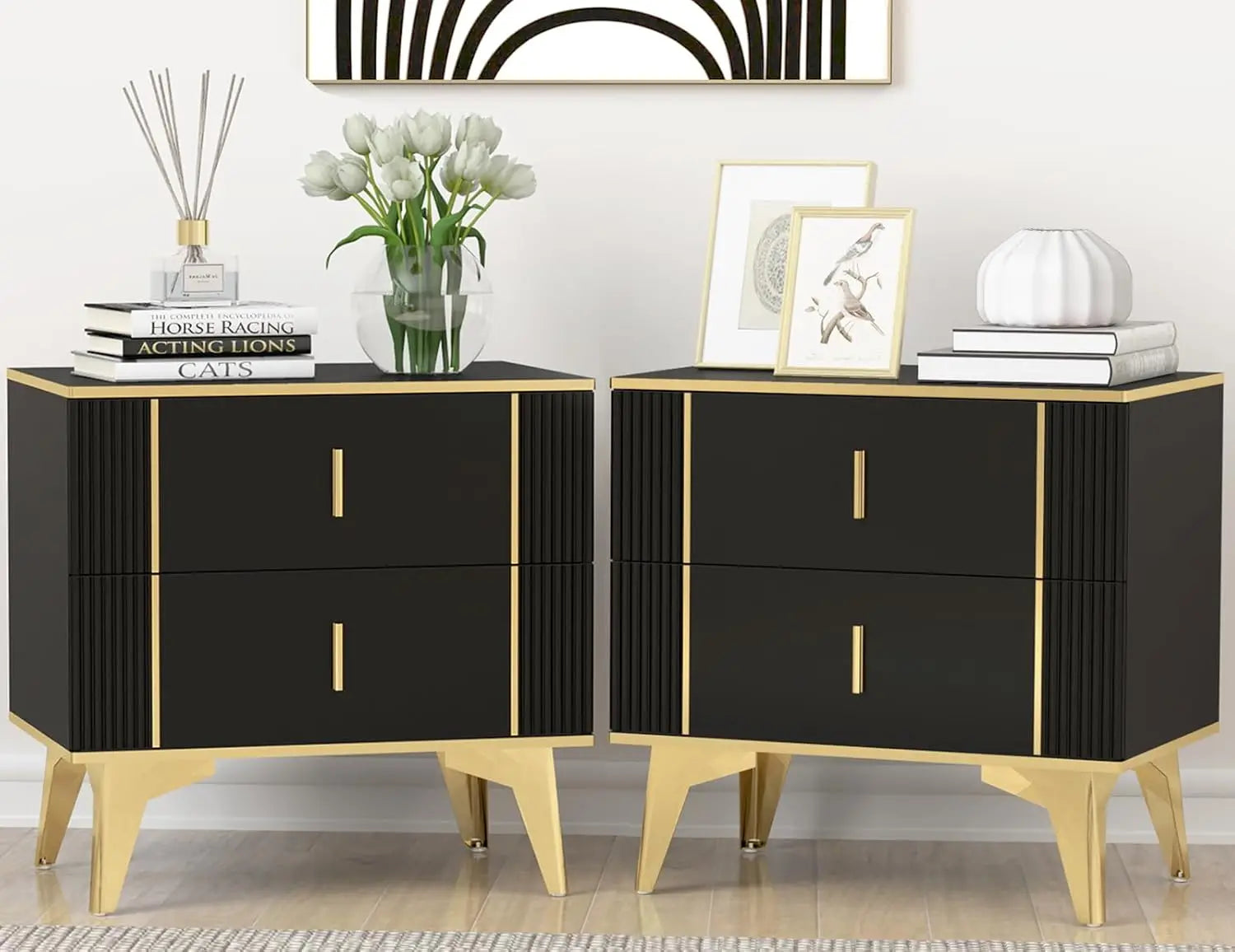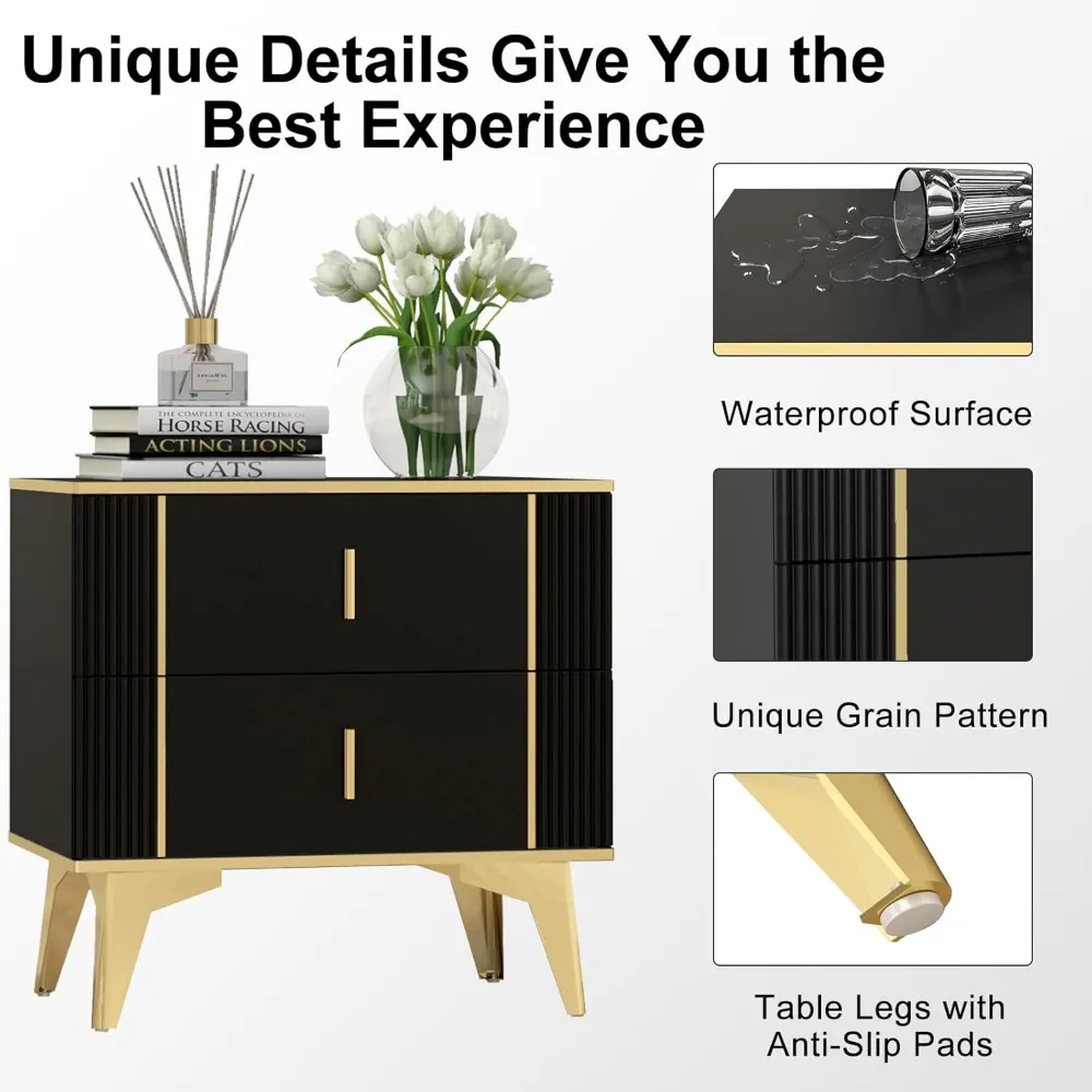 • Sturdy & Durable: Black nightstands set of 2 is composed of high-quality MDF panels, sturdy and durable, and gold metal legs enhance the stability of the nightstand with drawers, ensure your bedside lamp, clock or other items; Also waterproof surface treatment is easy to clean and maintain.