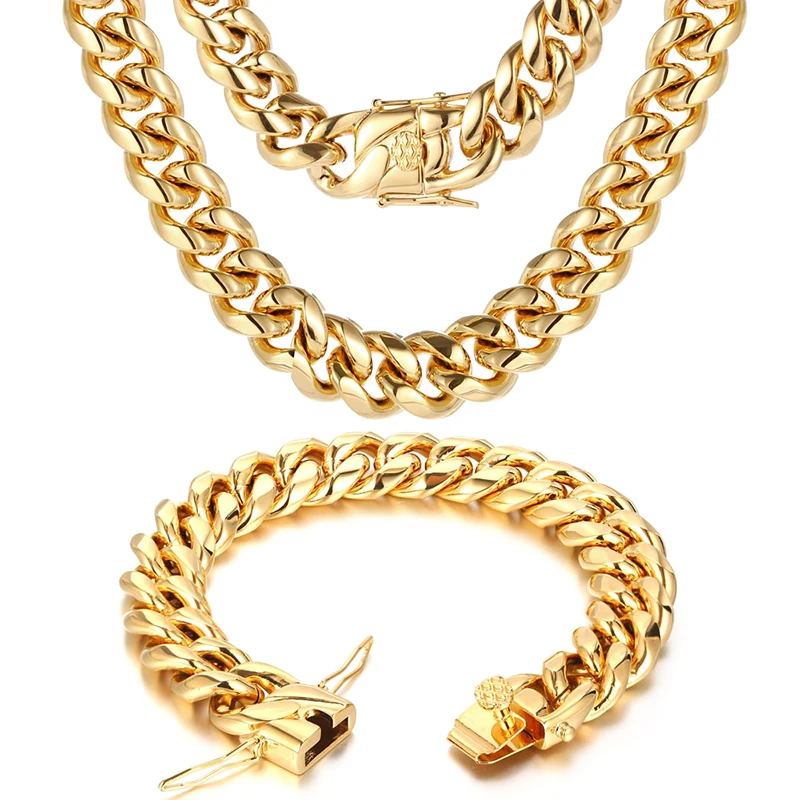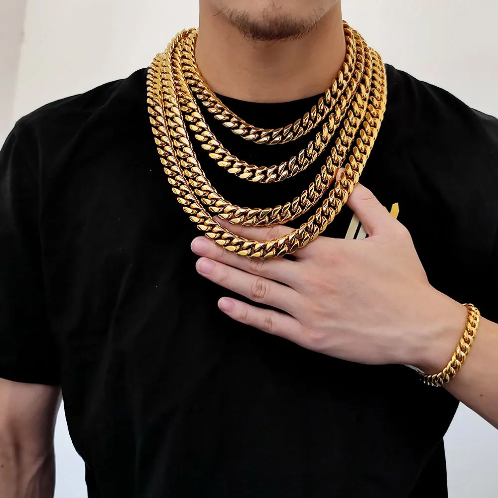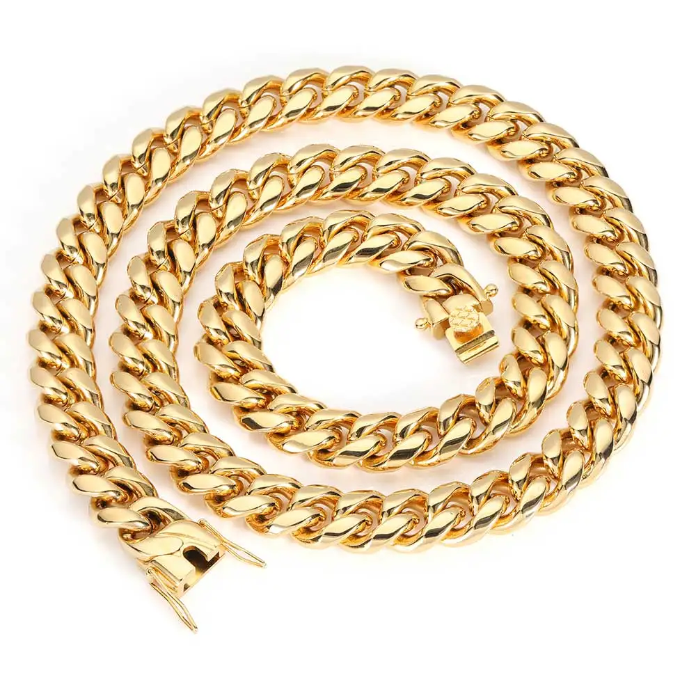 High Quality Stainless Steel Cuban Link Chain 18K Gold PVD Plated Miami Cuban Link Chain Necklace Men's Hip Hop Necklace Jewelry |